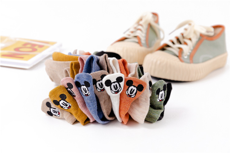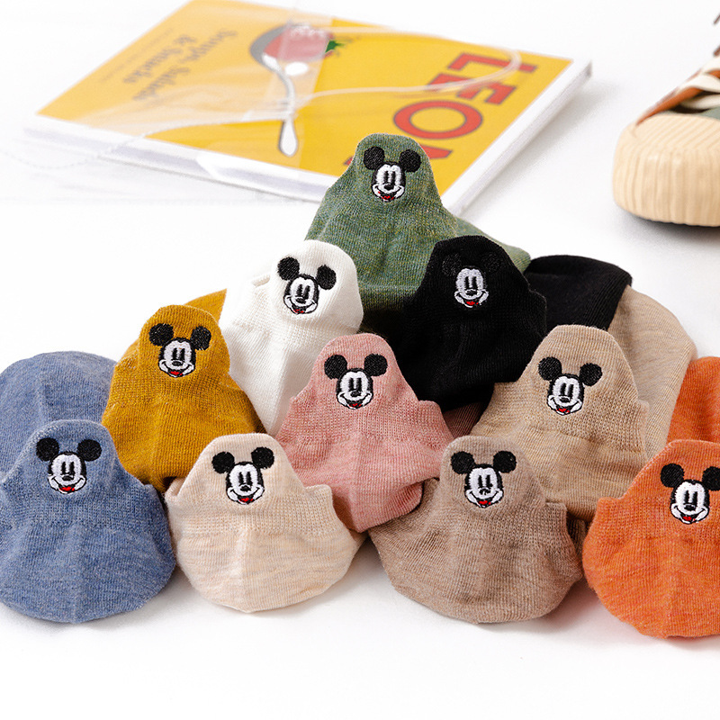 Spring and summer new socks Japanese Mickey Mouse Embroidery ladies boat Socks solid color low-top shallow socks spot