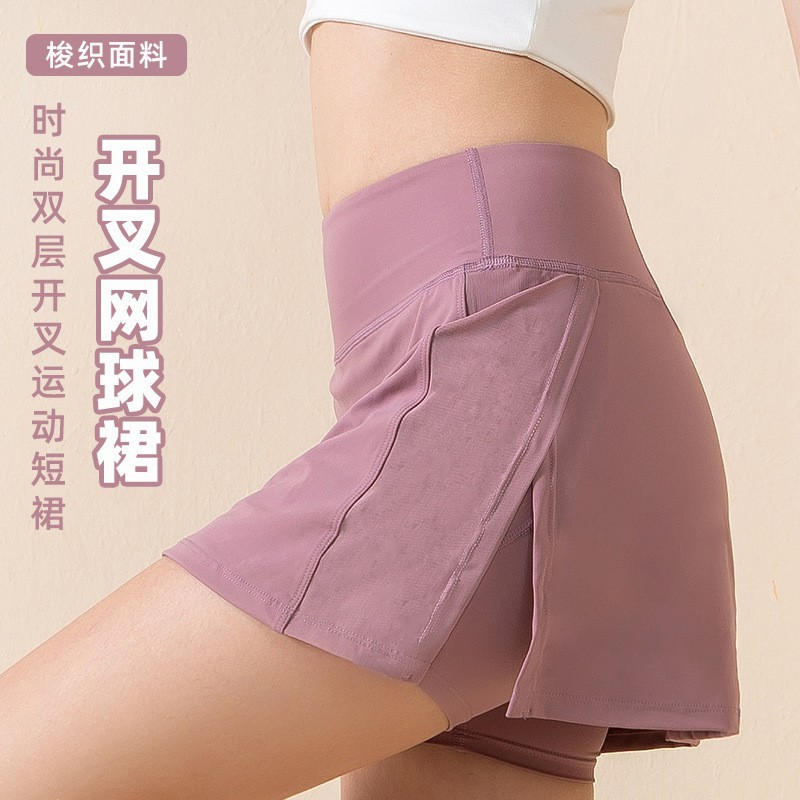 Spring and Summer New Split Tennis Skirt Women's Slimming Hip Covering Anti-embarrassment Yoga Skirt Quick-drying Fitness Skirt