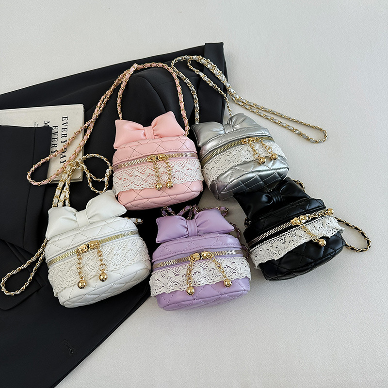 Spring and Summer New Style Chanel Style Lace Children’s Bag Cute Bow Girls’ Crossbody Bag Western Style All-match Shoulder Bag