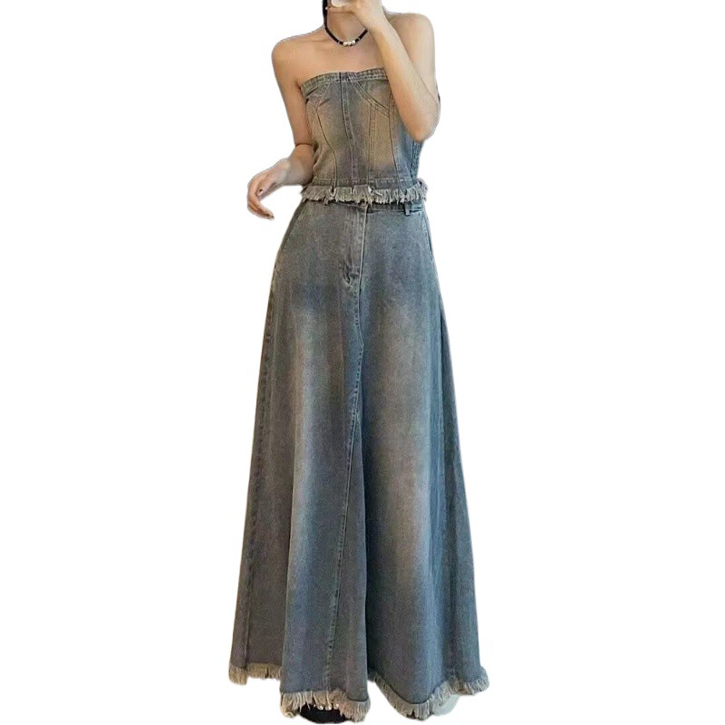 | nameOriginal | Spring and Summer New Washed Light Color Denim Skirt Women's Fur Edge Design Small Mid-length A- line Retro Hip Skirt |