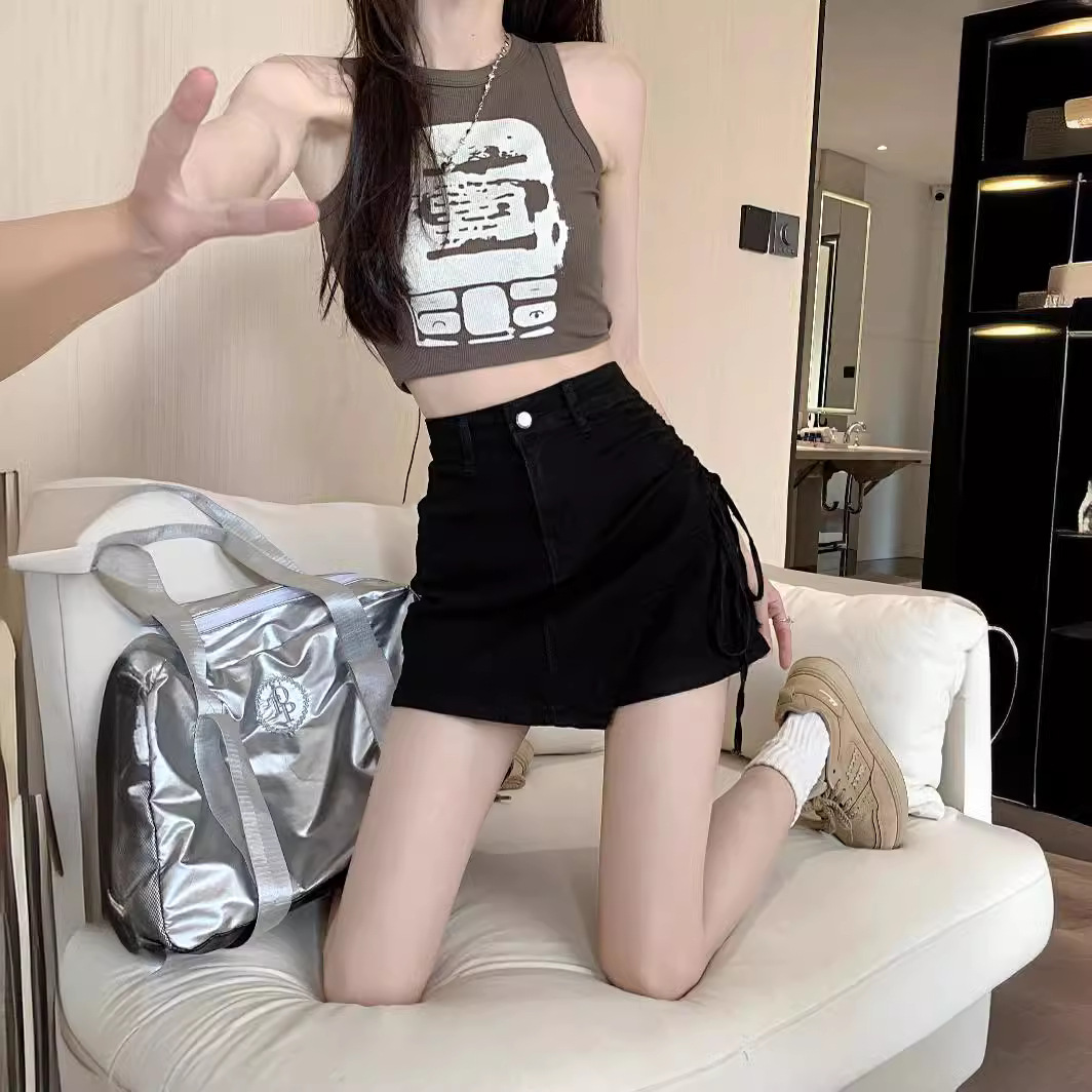 | nameOriginal | Spring and Summer New Women's Hot Girl Shorts Niche Design Drawstring Denim Pants Skirt Women's Stretch Hot Pants American Pants |