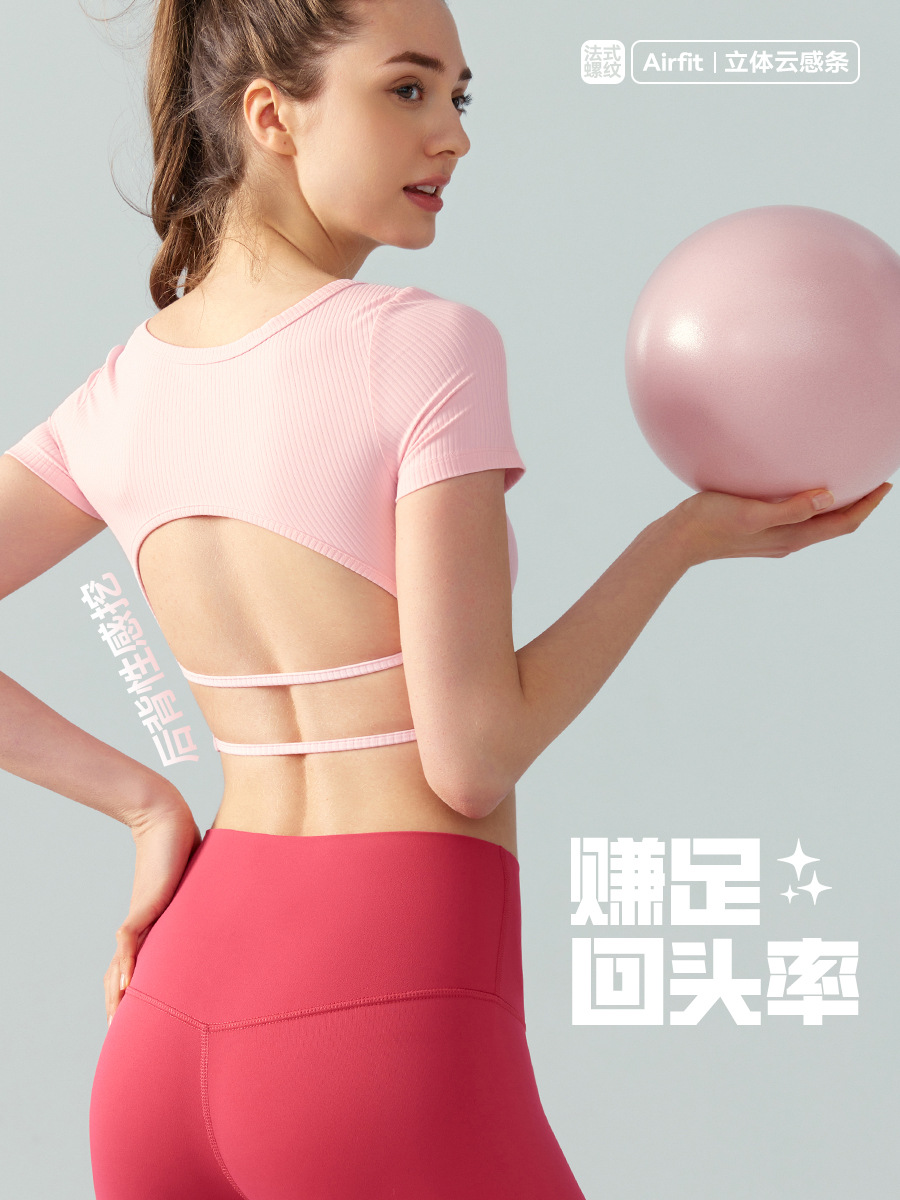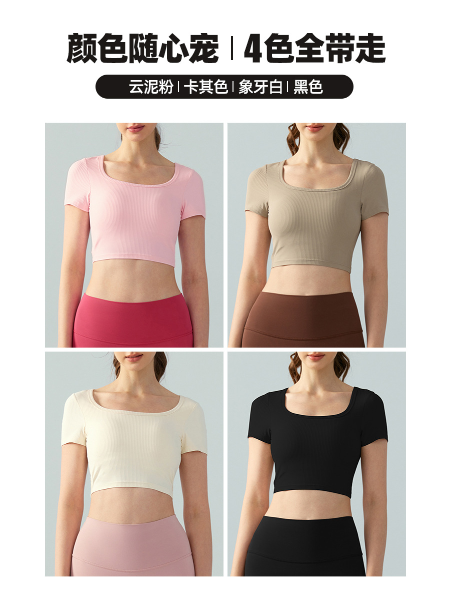 | nameOriginal | Spring and summer new yoga short sleeve women with chest cushion square collar sexy backless short sports T-shirt running fitness top |