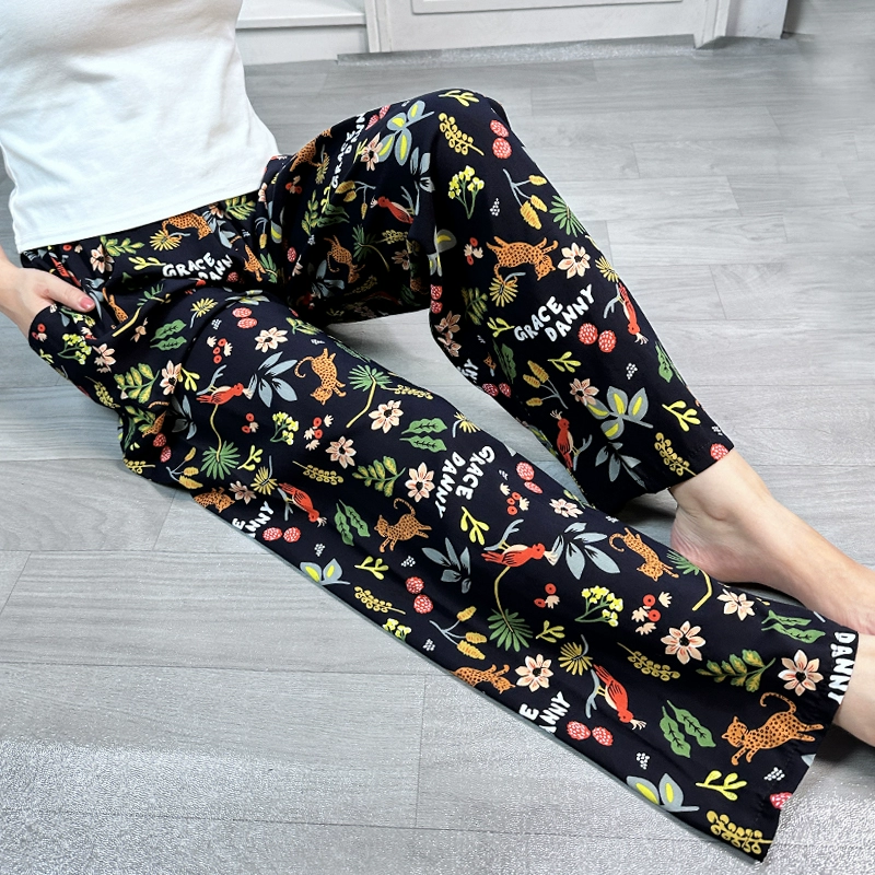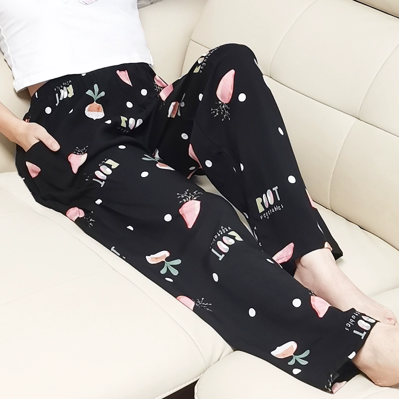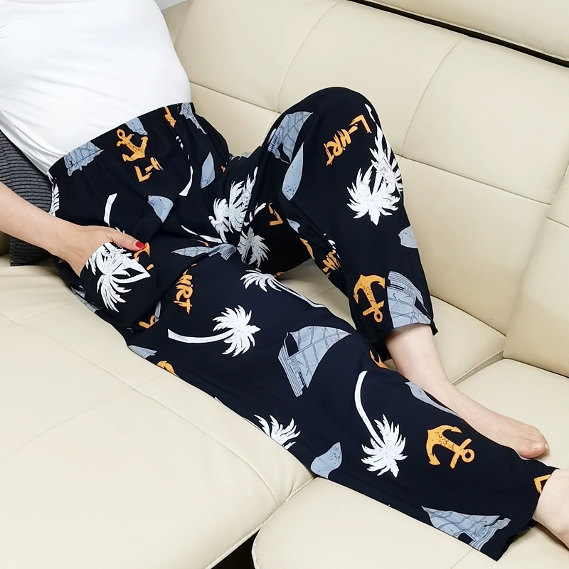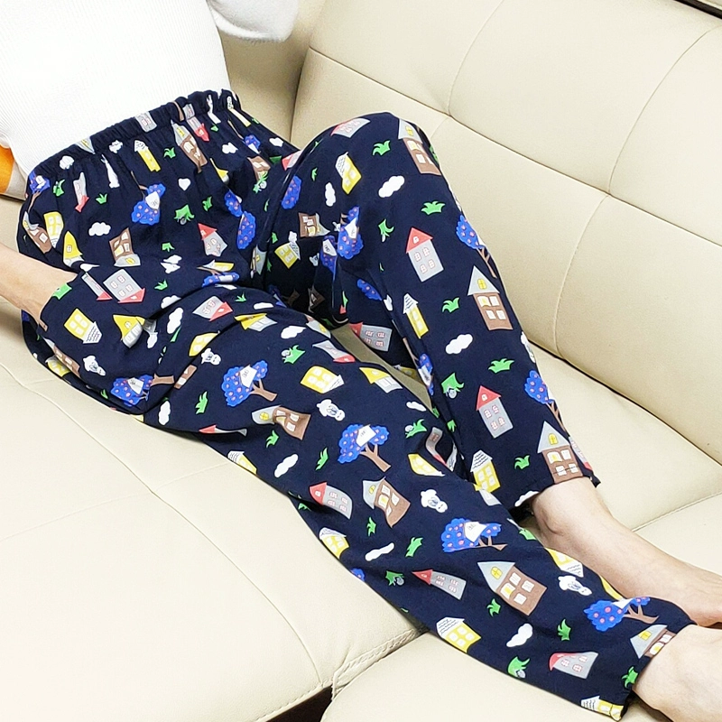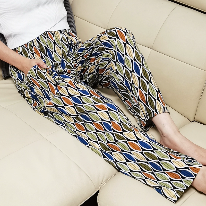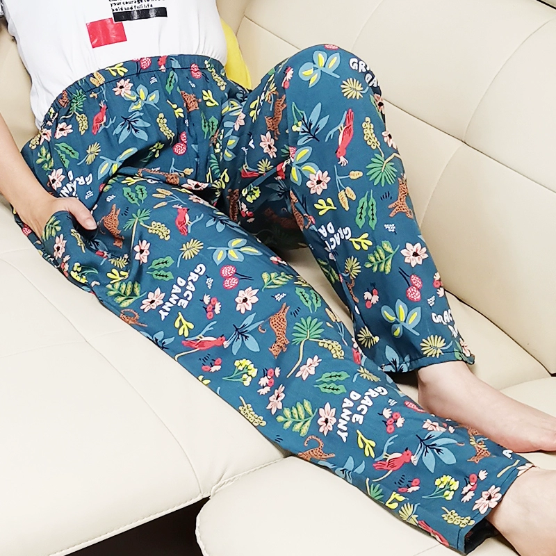 Spring and summer pajamas for men and women, pure cotton cotton silk pants, plus length pants, large size thin home pants, artificial cotton air-conditioning pants, confinement pants