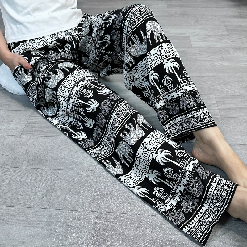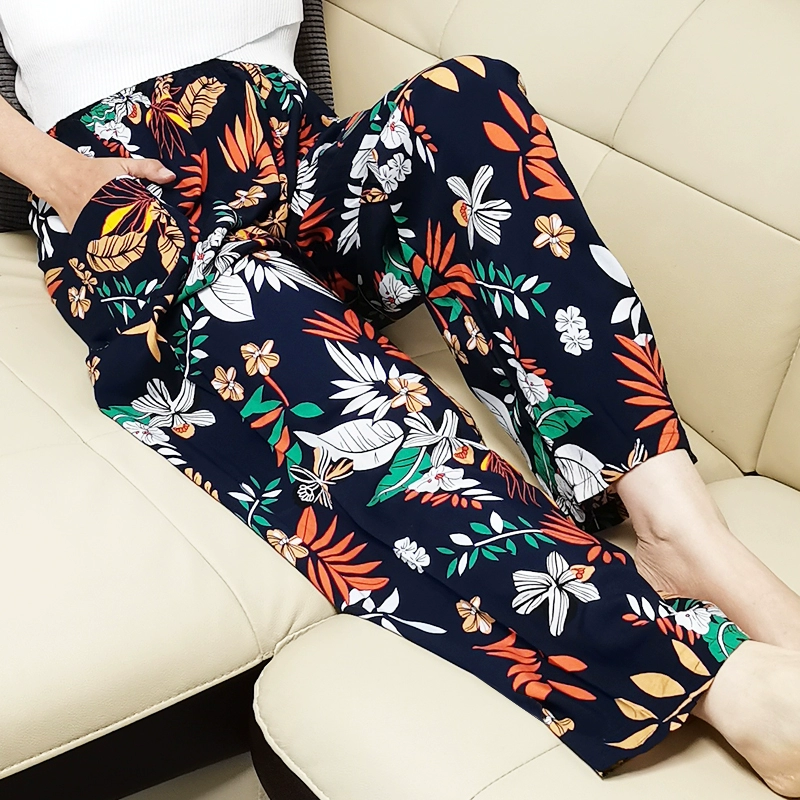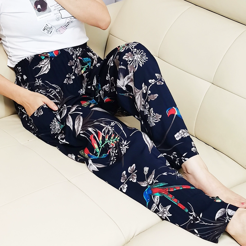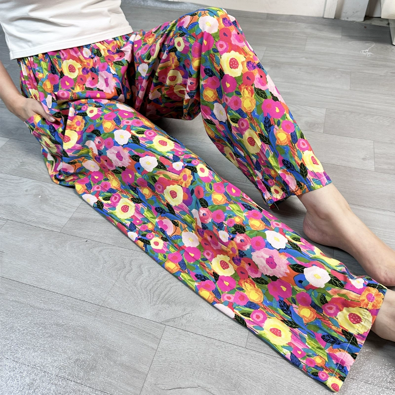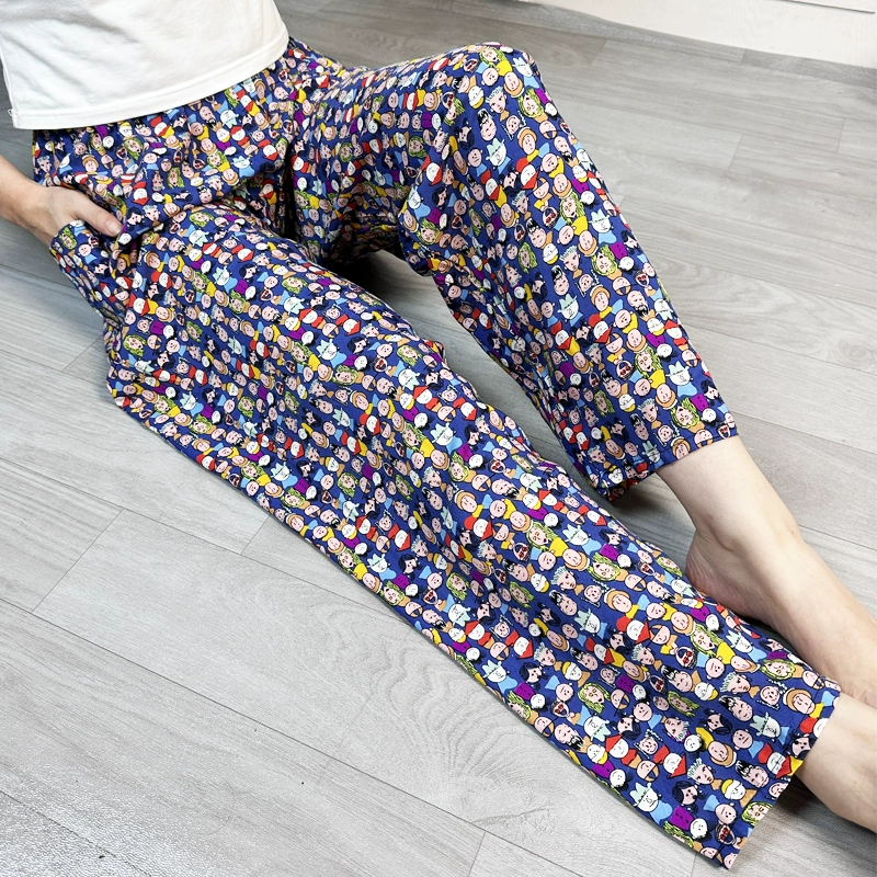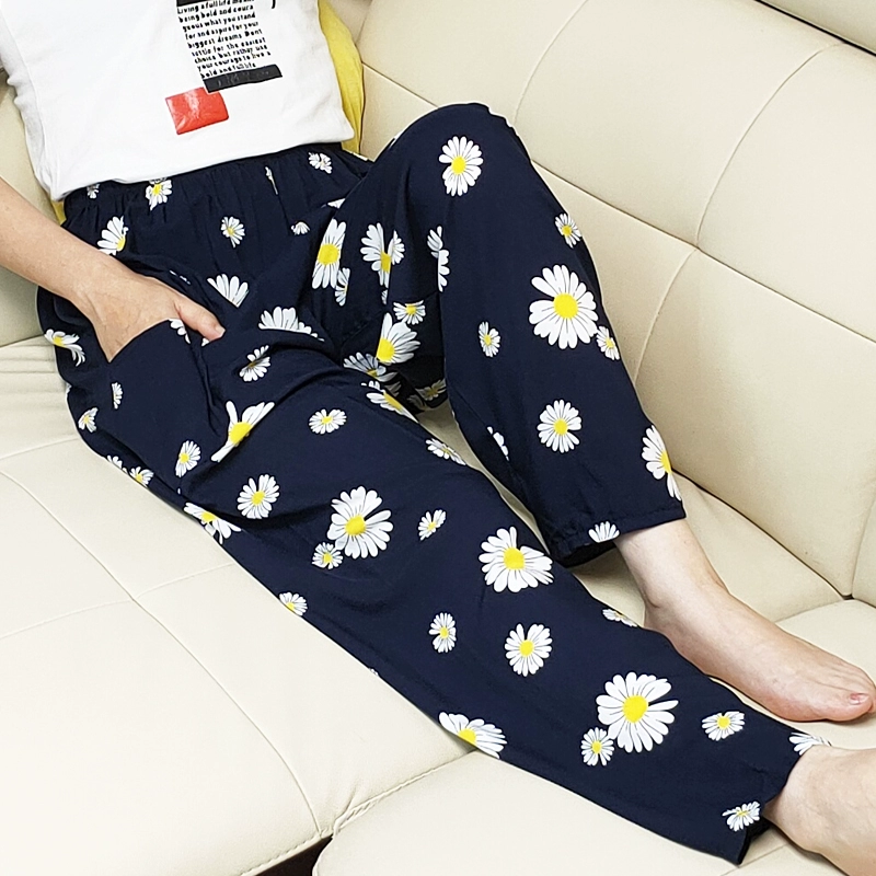 Spring and summer pajamas for men and women, pure cotton cotton silk pants, plus length pants, large size thin home pants, artificial cotton air-conditioning pants, confinement pants