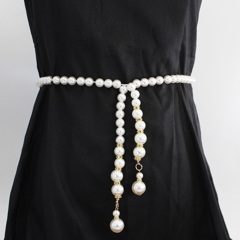 | nameOriginal | Spring and Summer Pearl Waist Chain Women's Korean-style Shirt Skirt All-match Fashionable Stretch Elastic Decorative Knot Thin Belt |