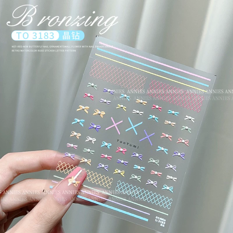 | nameOriginal | Spring and summer popular crystal diamond bow nail art stickers 2024 new internet celebrity high-end nail decal decorations |