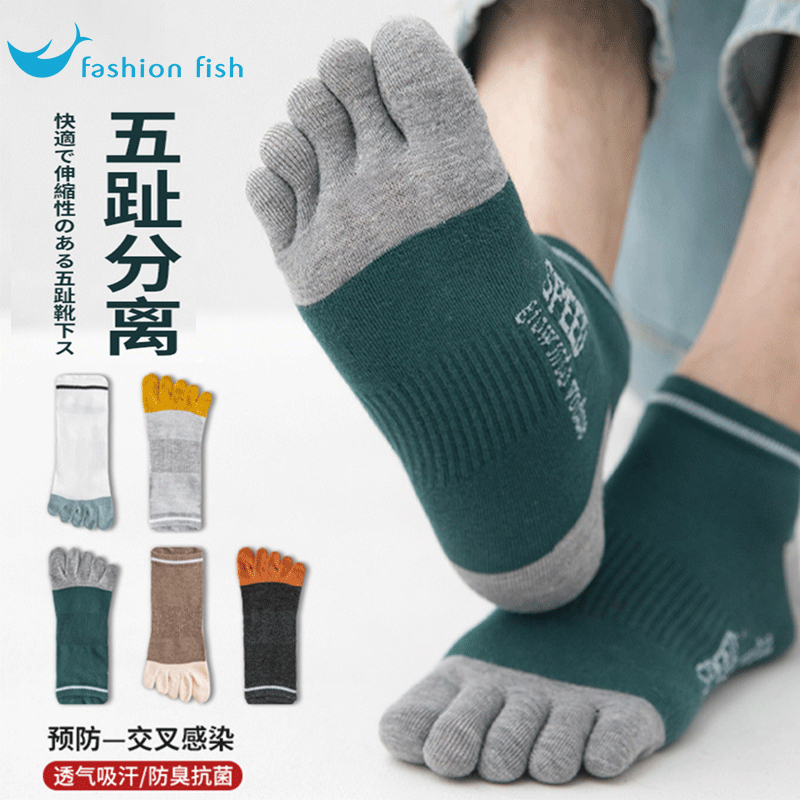Spring and summer pure cotton toe anti-odor men’s toe socks