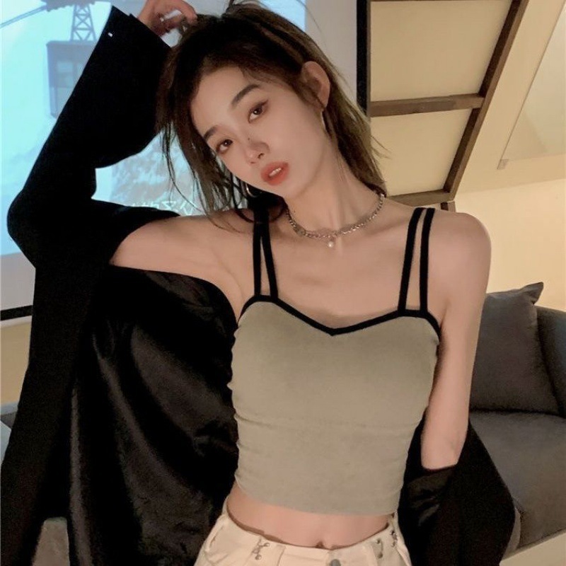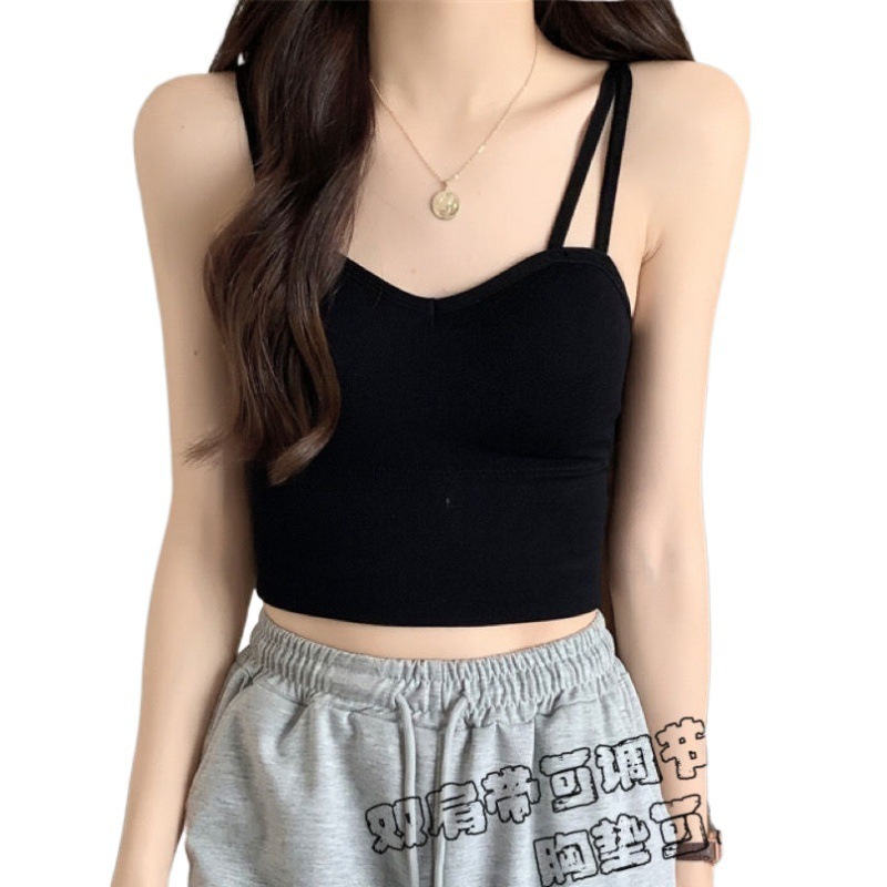 Spring and Summer Pure Sweet Spice Girl Camisole Women's Summer Outer Wear with Chest Pad Tube Top Sleeveless Sexy Top