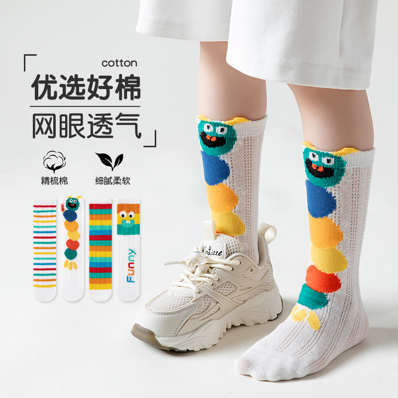 Spring and Summer Rainbow Color Cartoon Children's Funny Boys and Girls Class A Cotton Socks Breathable Mesh Socks Children's Stockings