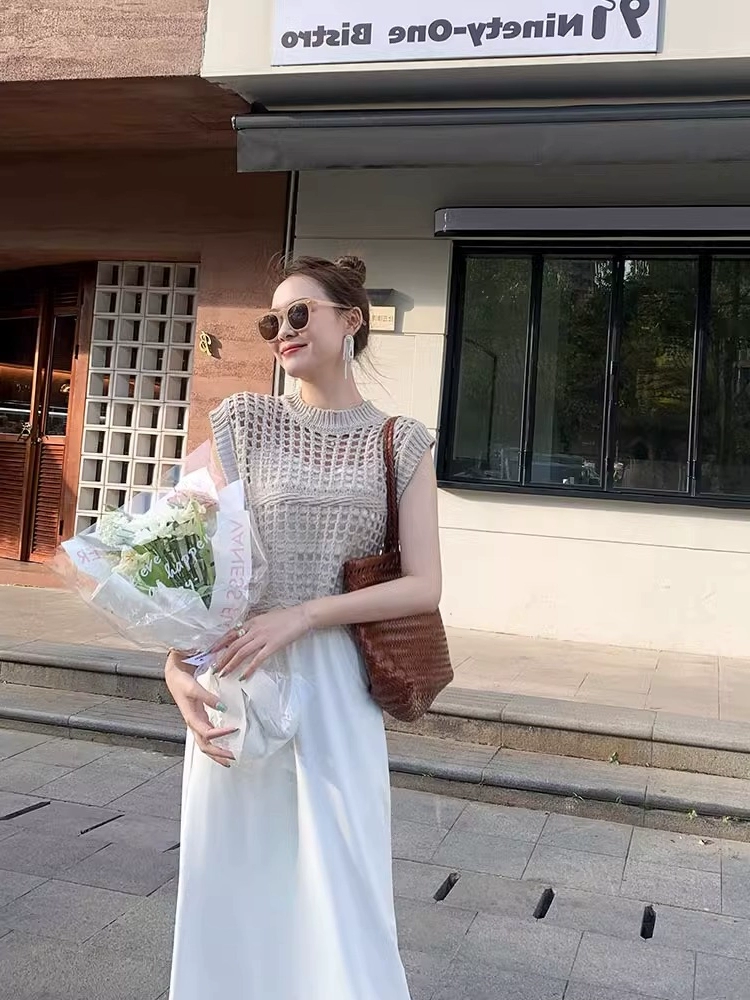 | nameOriginal | Spring and summer resort style knitted round neck short blouse |