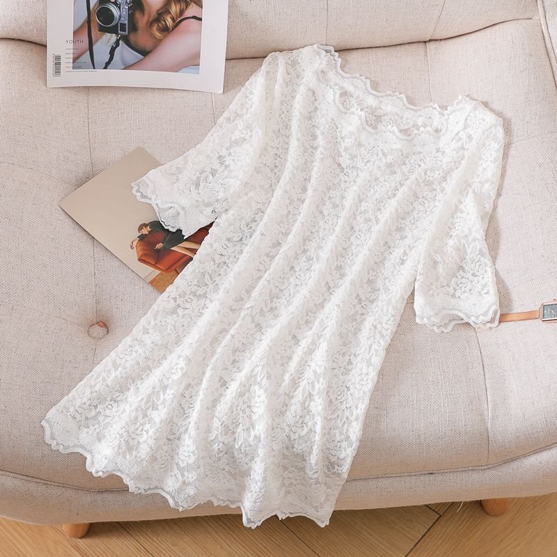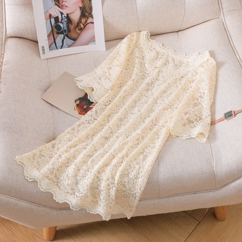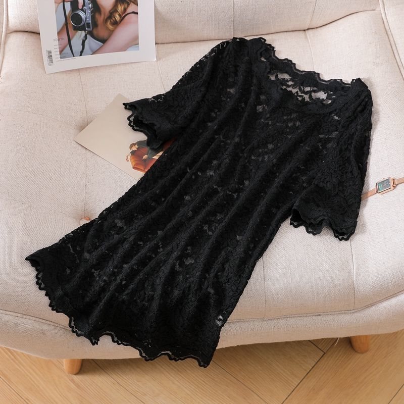 | nameOriginal | Spring and Summer Round Neck Lace T-Shirt Sexy Feminine Bottoming Small Shirt Mesh Lined Three-Dimensional Crochet Style Interior |