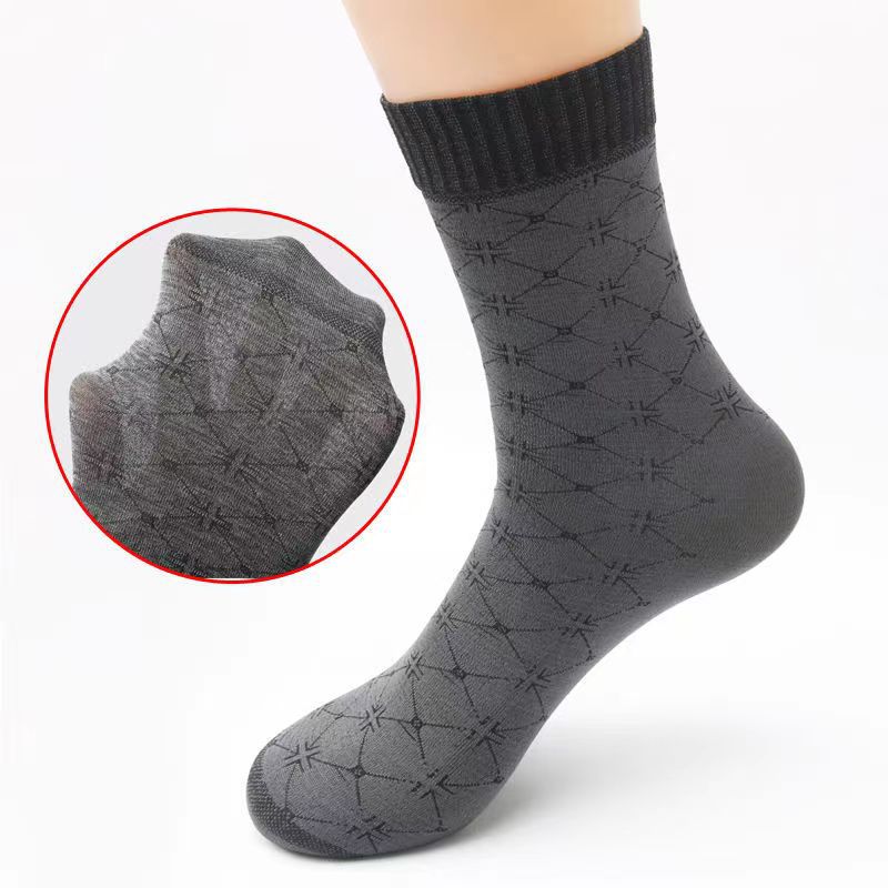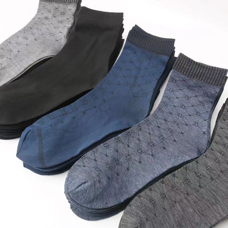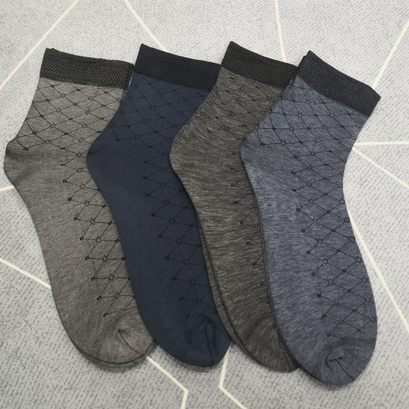 | nameOriginal | Spring and Summer silk stockings wholesale four-way jacquard men's socks loose mercerized cotton breathable thickened mid-calf men's stockings with heels |