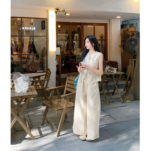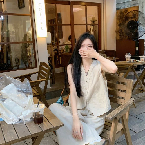 | nameOriginal | Spring and summer sleeveless high-waisted wide-leg trousers slimming vest |