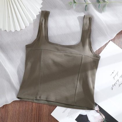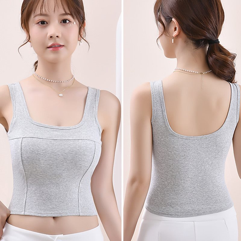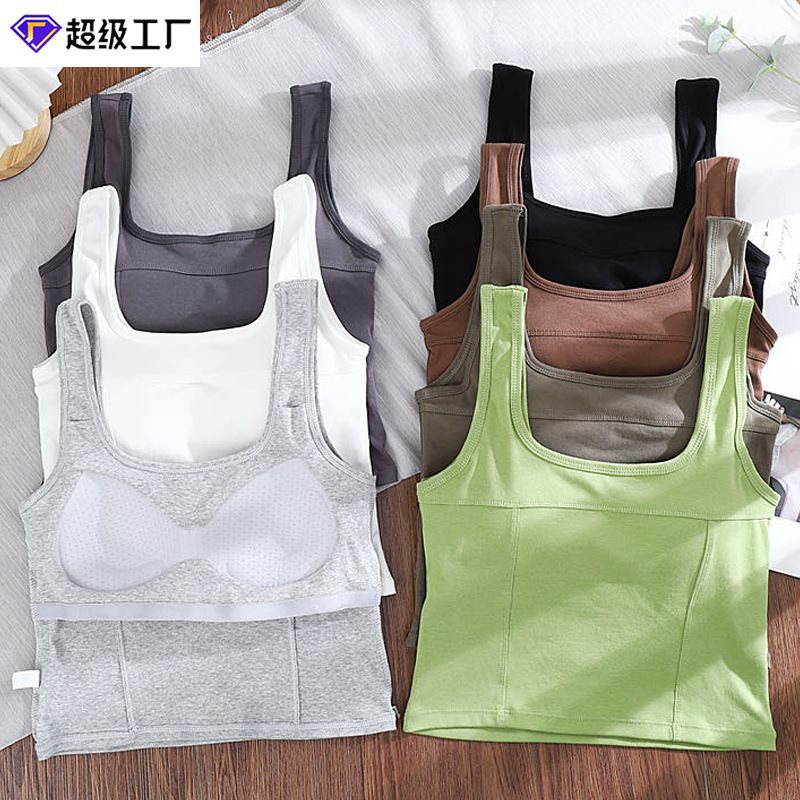 Spring and Summer Solid Color Seamless Sling Chest Wrap Vest Fixed One-piece Cup Inner Wearing Outer Wearing Mid-length Anti-running Vest for Women