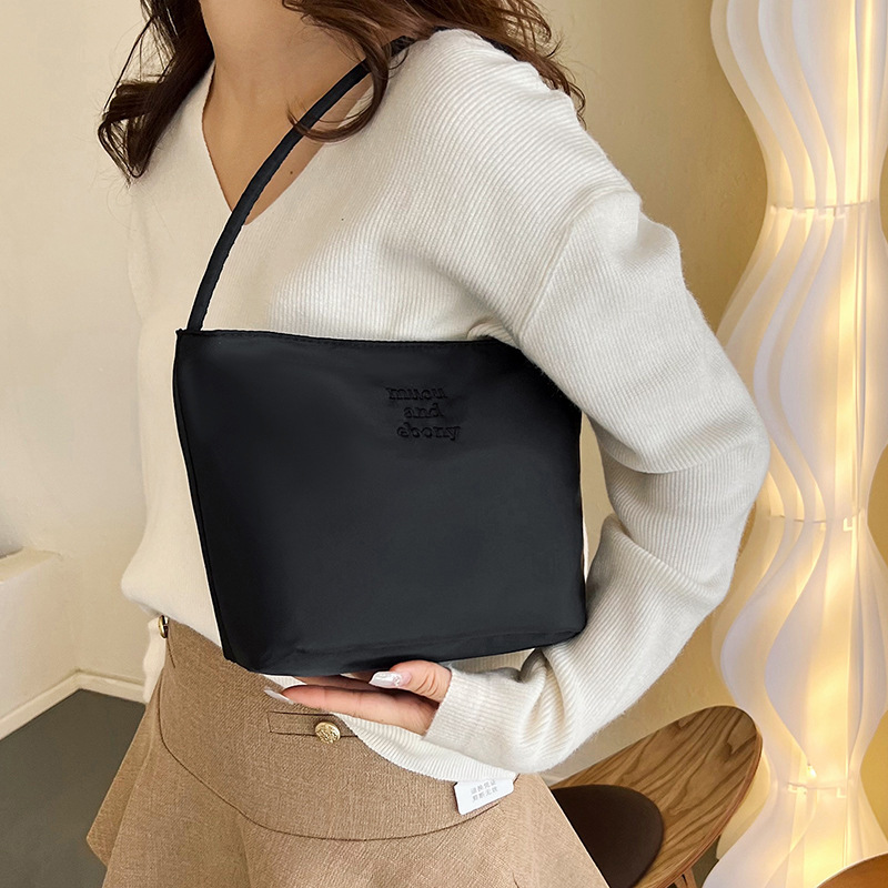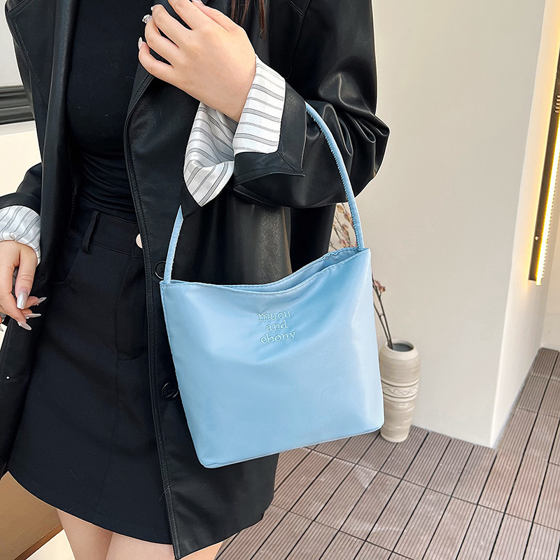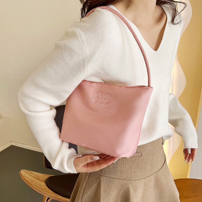 Spring and Summer South Korea niche fashion commuter bag embroidered nylon casual all-match underarm bag female tote handbag