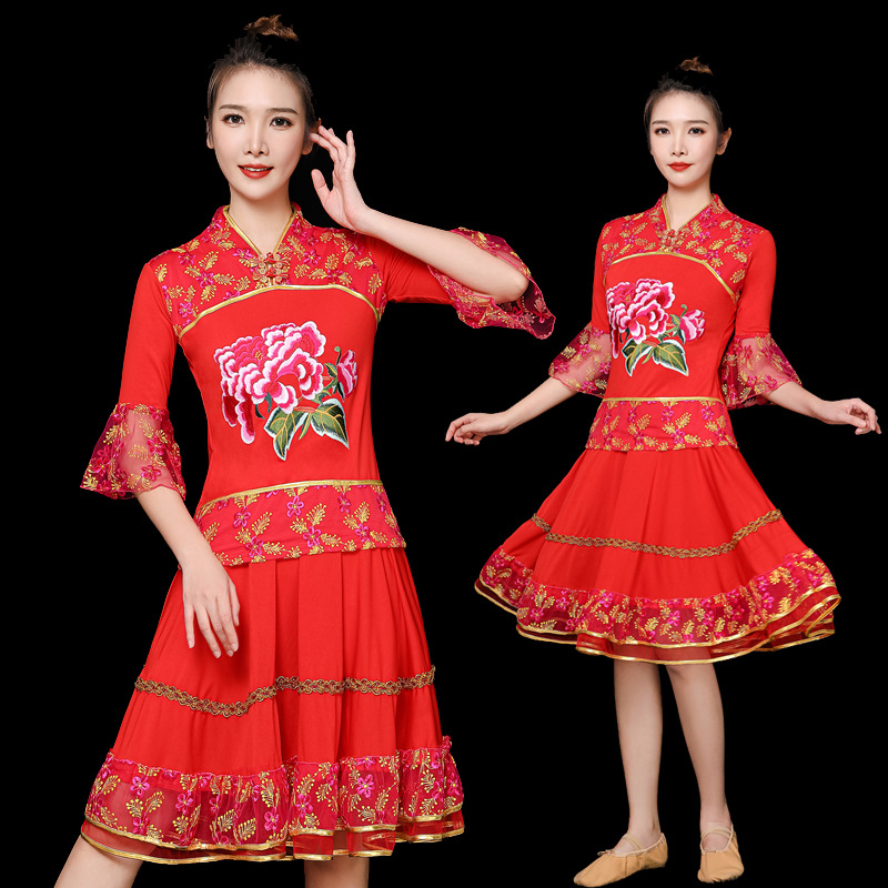 | nameOriginal | Spring and Summer Square Dance Dancing Costume Female Ethnic Style Embroidery New Middle-aged and Elderly Yangko Costume Performance Costume Summer |