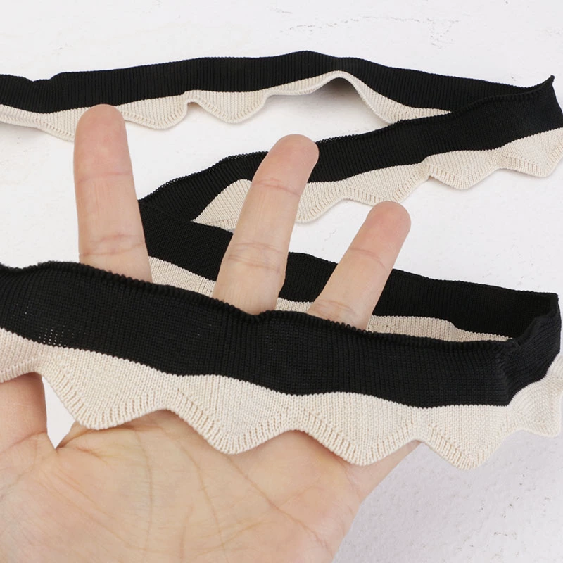 Spring and summer style wavy edge ribbed thin style threaded flat machine neck sweater cuffs hem ribbed closing decoration