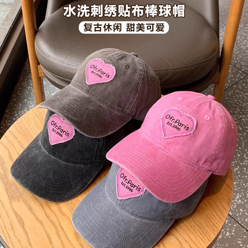 | nameOriginal | Spring and Summer Sweet cool lovely pink embroidered baseball cap women's all-match vintage washed soft top men's sun-proof peaked cap distressed |