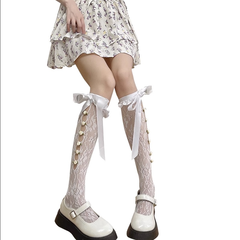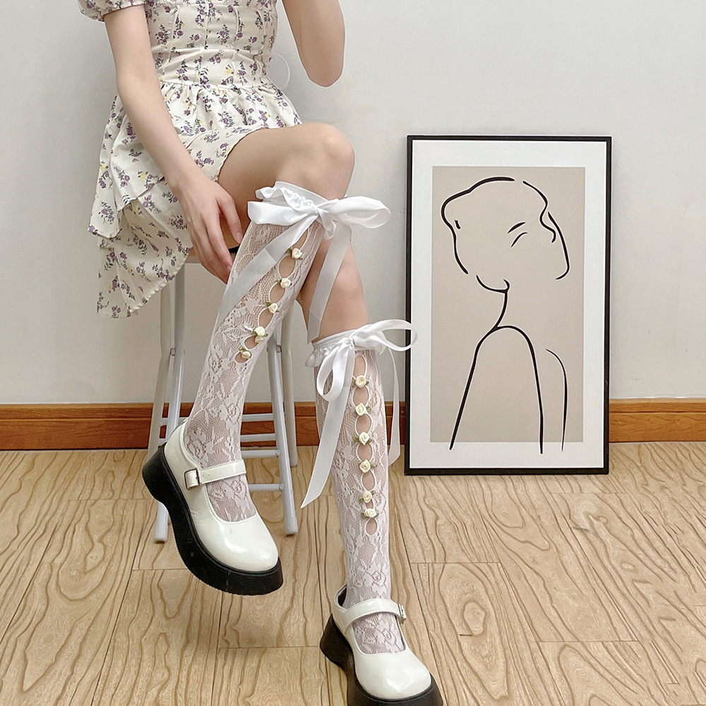 | nameOriginal | Spring and Summer Sweet Lace Mid-length Socks Roses Hollow-out Cuff Socks Lolita Lolita Soft Girl Socks Women |
