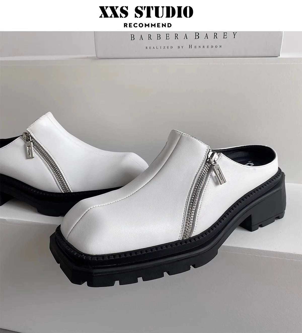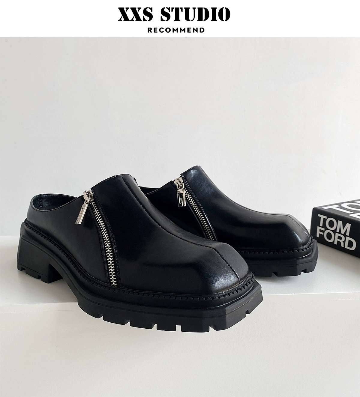 Spring and summer thick-soled lazy square-toe half slippers