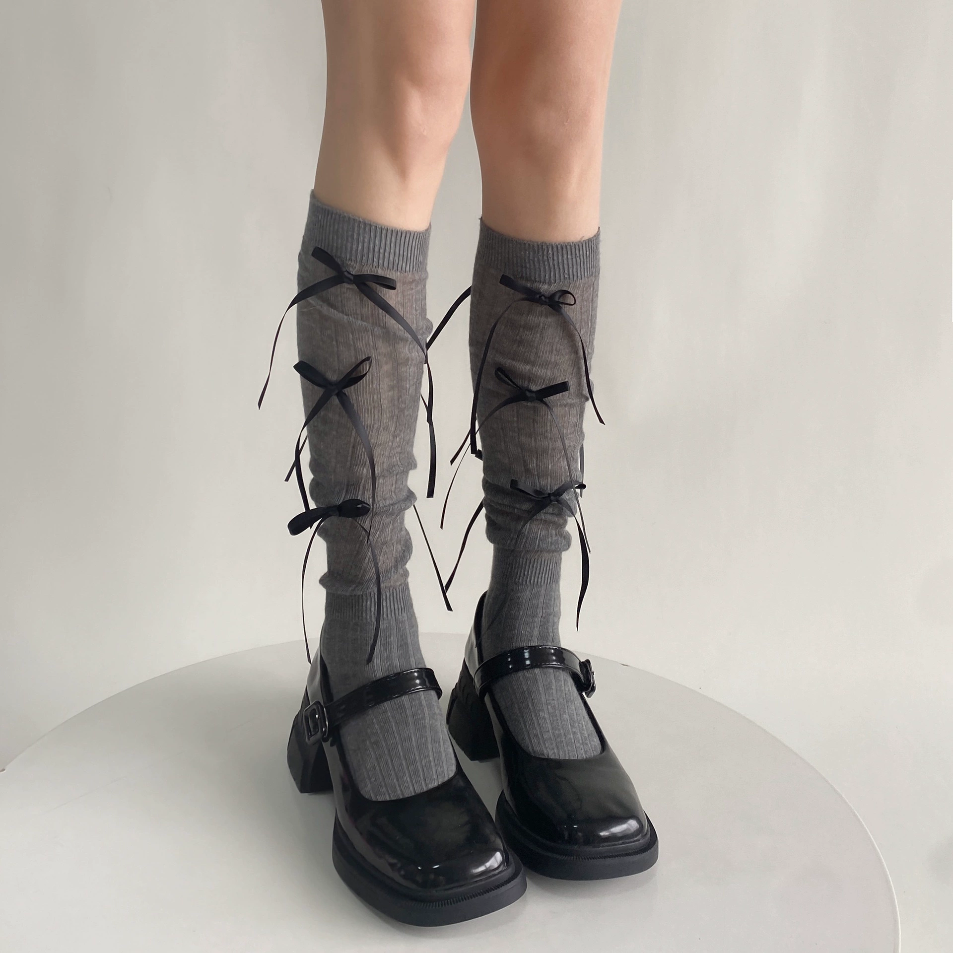 Spring and summer thin ballet ballet ribbon bow pile pile of female stockings splicing sweet college wind jk calf socks