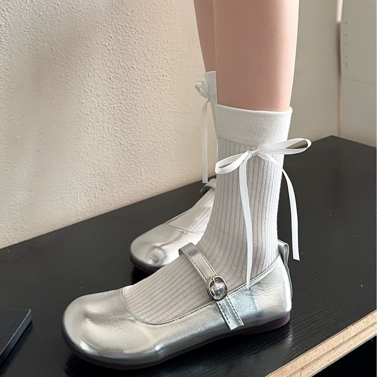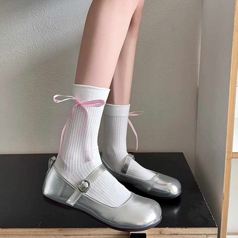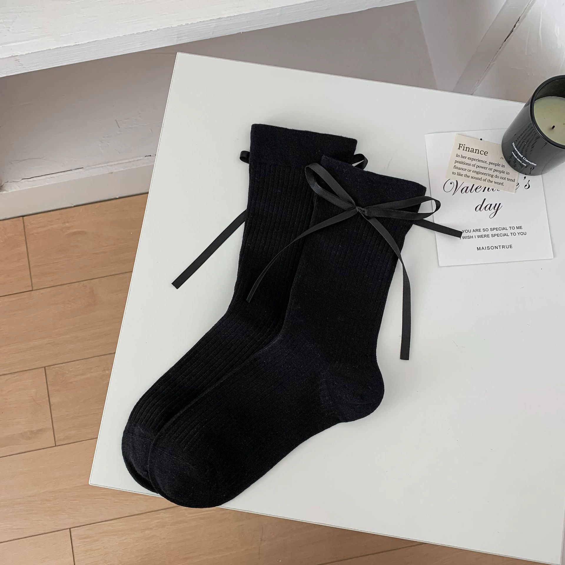 | nameOriginal | Spring and summer thin ballet style strappy bow socks women's mid-calf socks Japanese girl Lolita jk pile socks |