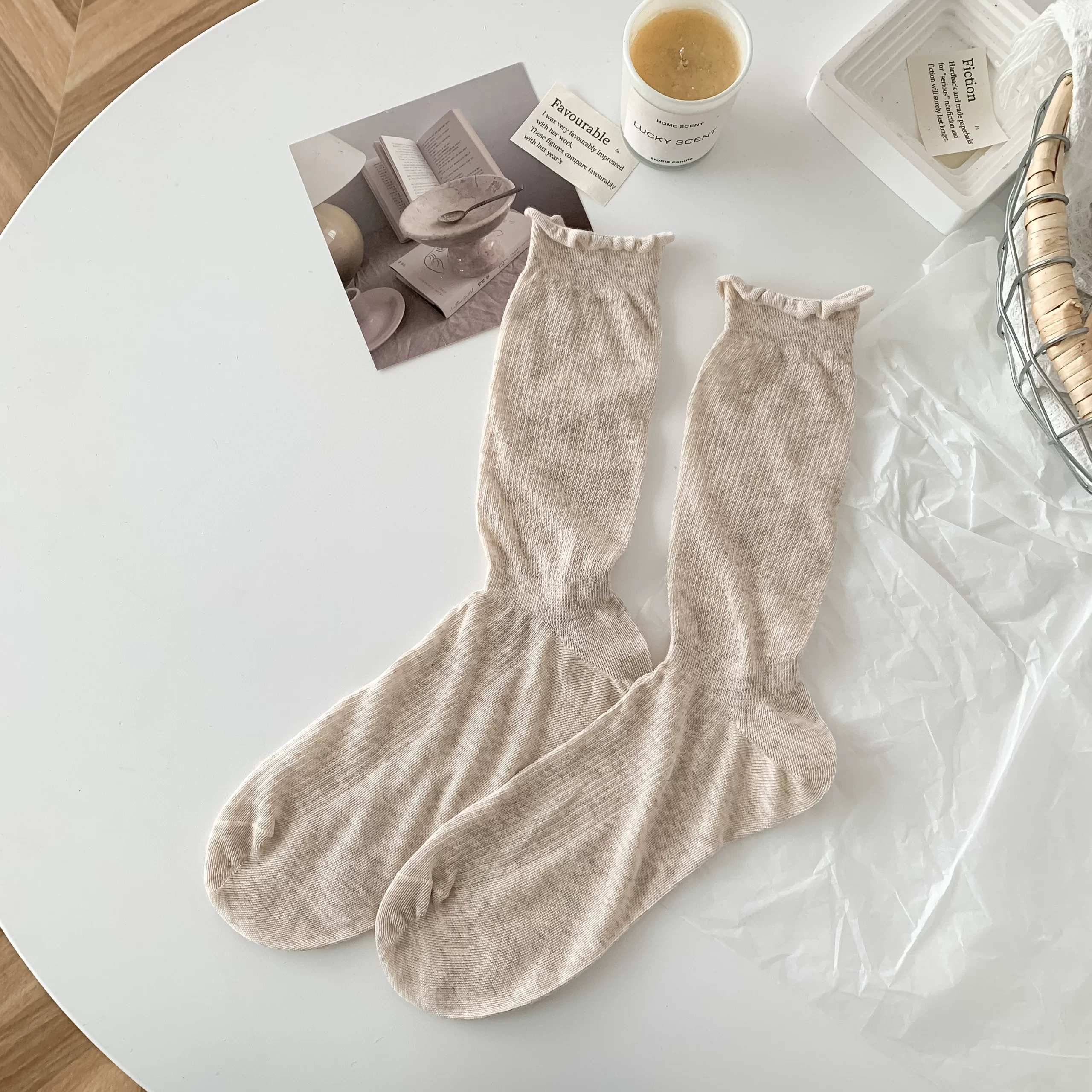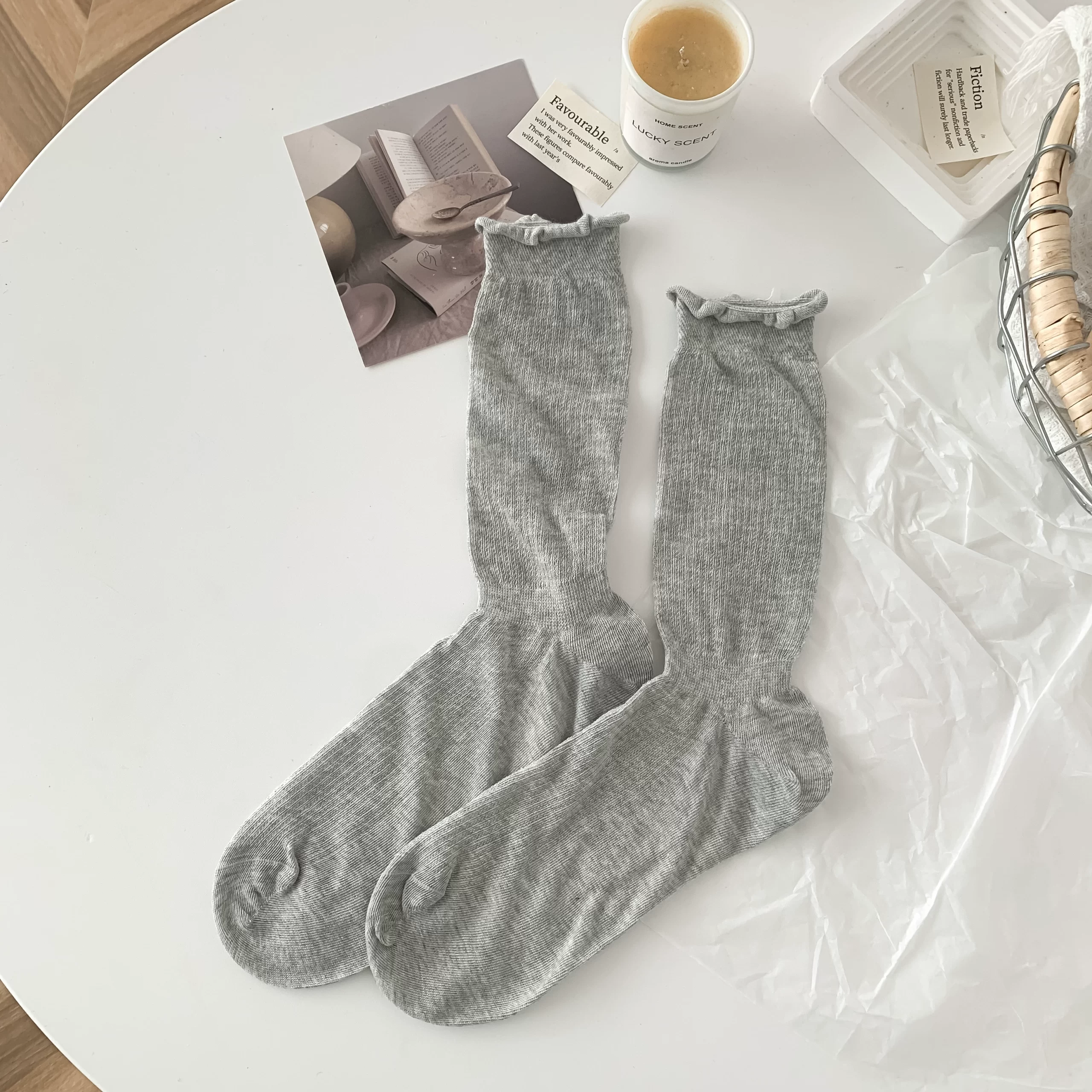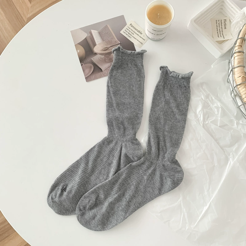 | nameOriginal | Spring and summer thin breathable bubble mouth mesh versatile pile socks for women Korean style wear solid color curled Japanese mid-calf socks |
