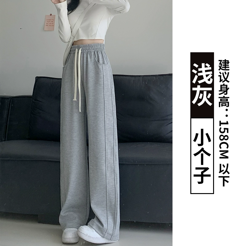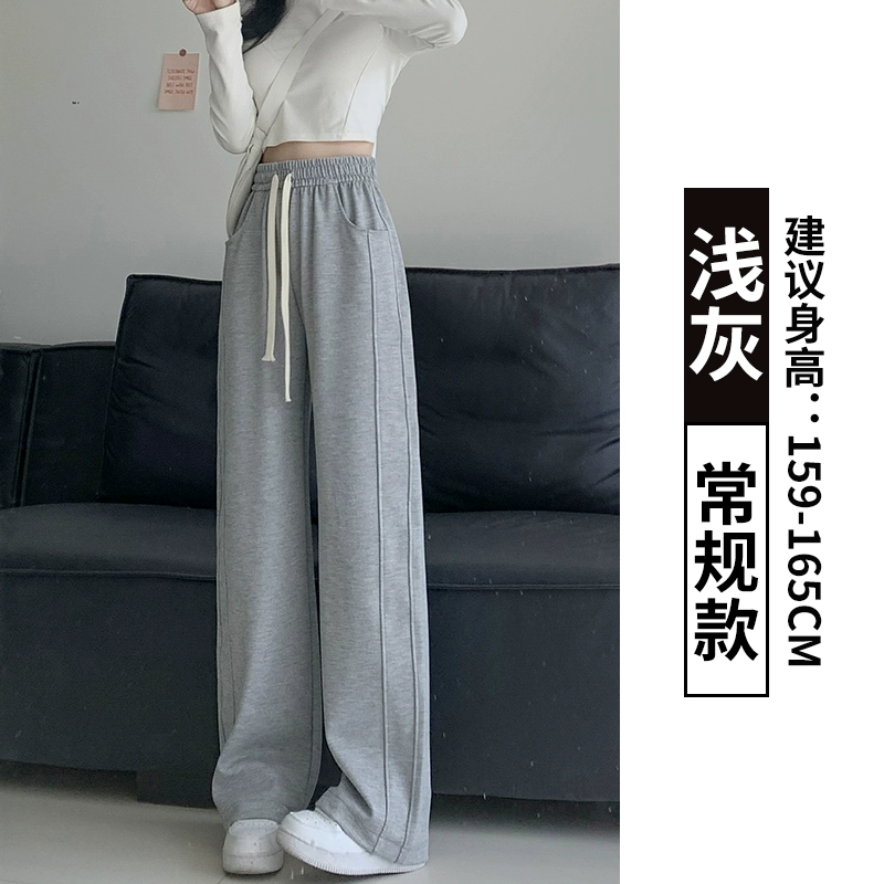 Spring and summer thin high-waisted straight casual gray sweatpants