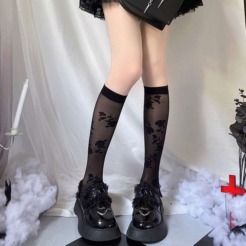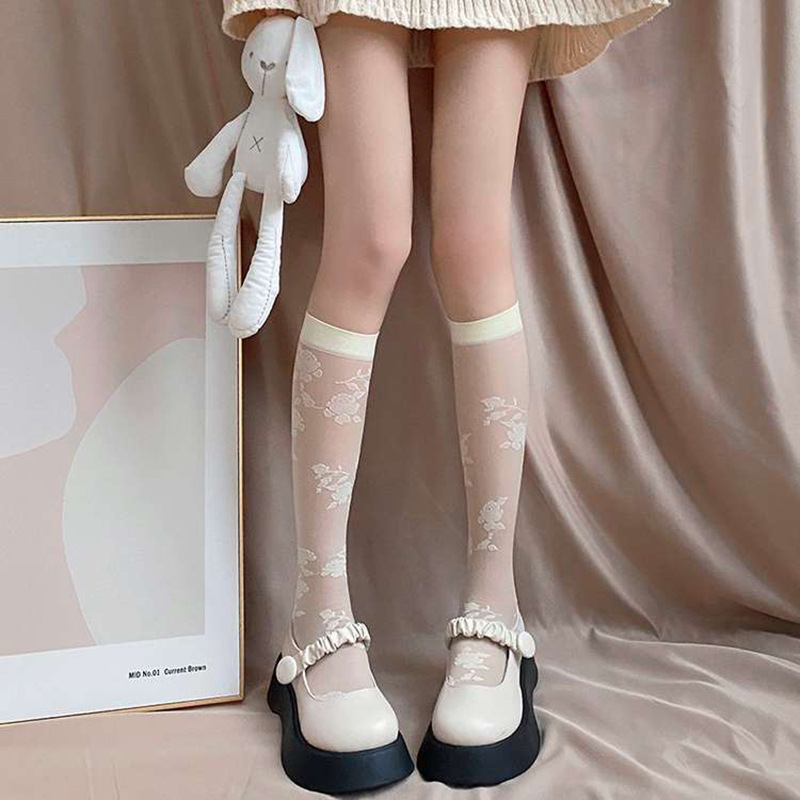 | nameOriginal | Spring and summer thin Japanese jk white calf socks meat jacquard stockings lolita Rose mid-tube socks for children |
