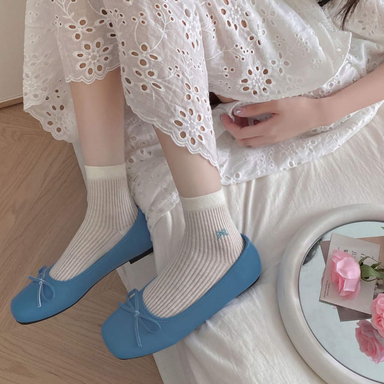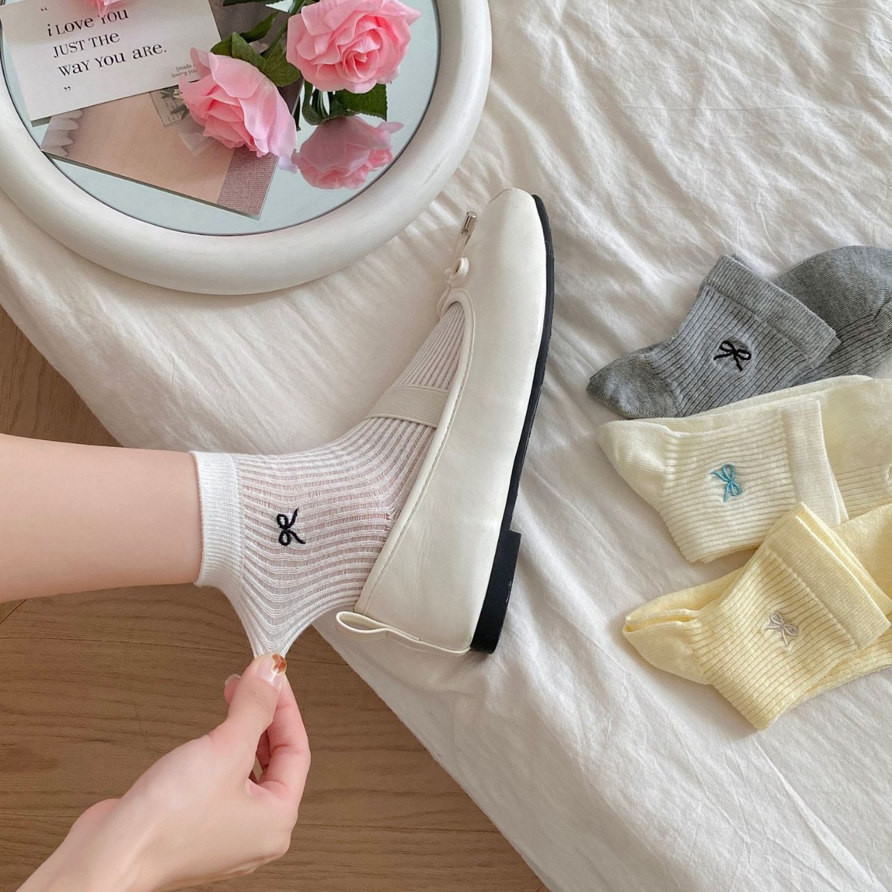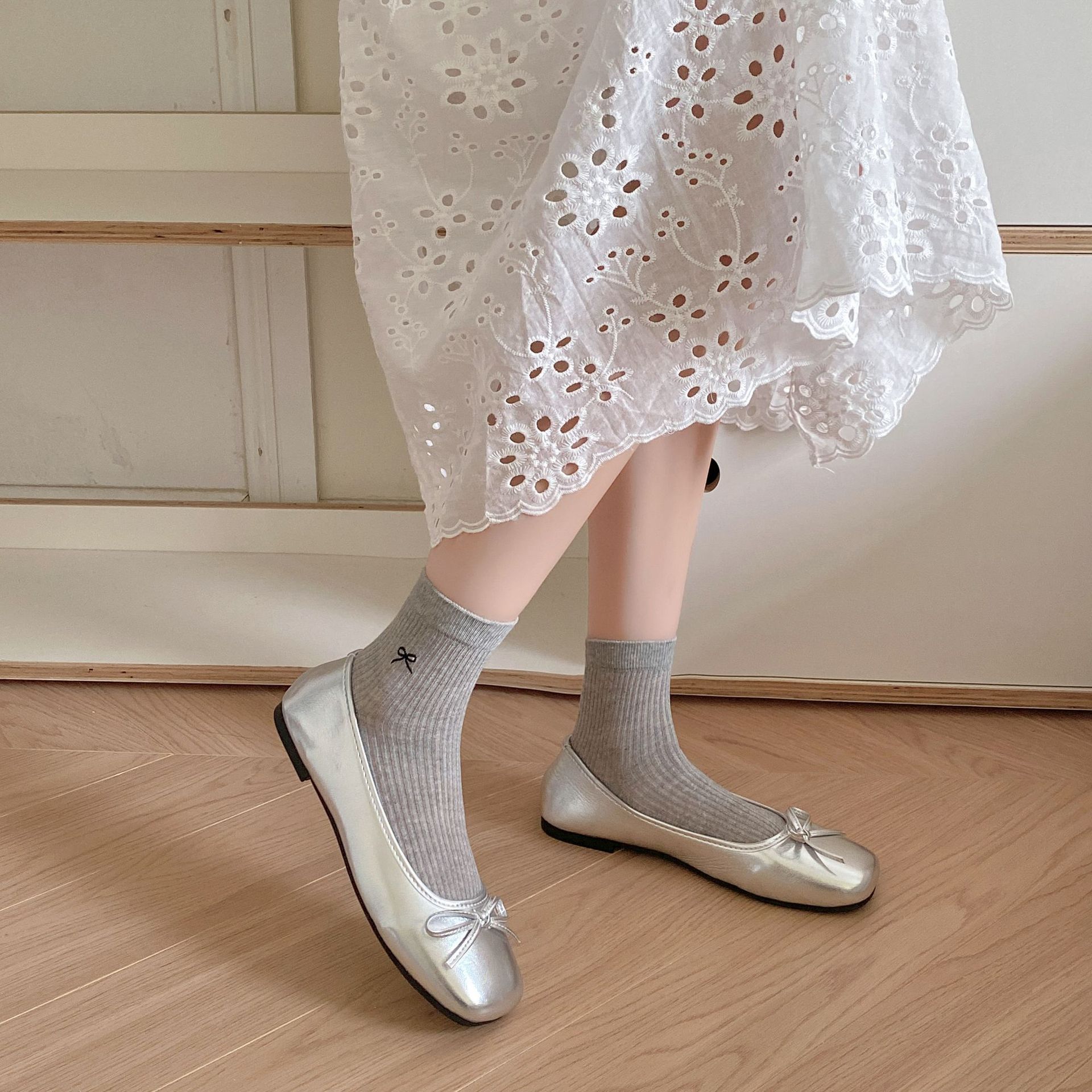 | nameOriginal | Spring and Summer Thin Mesh Breathable White Short Socks Women's Cute Girl's Bow Mid-length Socks Student Cotton Socks |