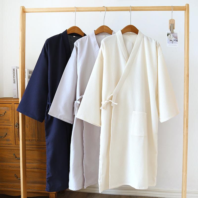 Spring and Summer Thin Pure Cotton Waffle Bathrobe Men’s Japanese Style Nightgown Cardigan Hotel Bath Clothes Loose Lace-up Sweatshirt