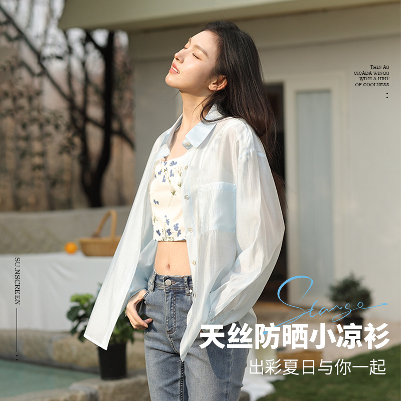 Spring and Summer Thin Sunscreen Shirt Tencel Sunscreen Clothing Women's 2024 New Gentle Casual Sunscreen Women