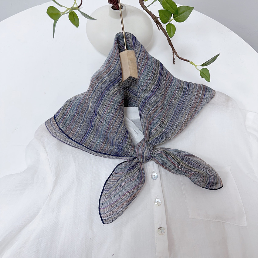 Spring and Summer Vintage Small Plaid Linen Square Scarf Artistic All-match Women’s Summer Neck Protection Small Silk Scarf Scarf Accessories New Products