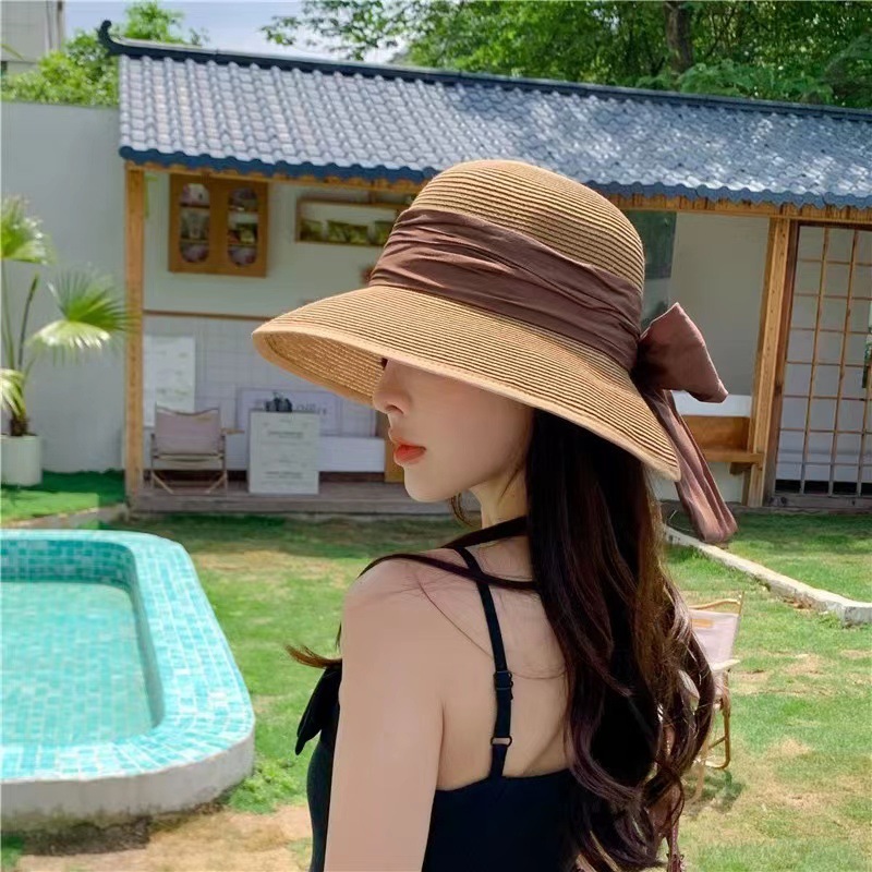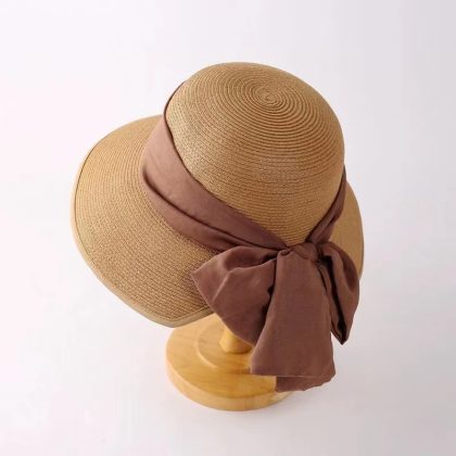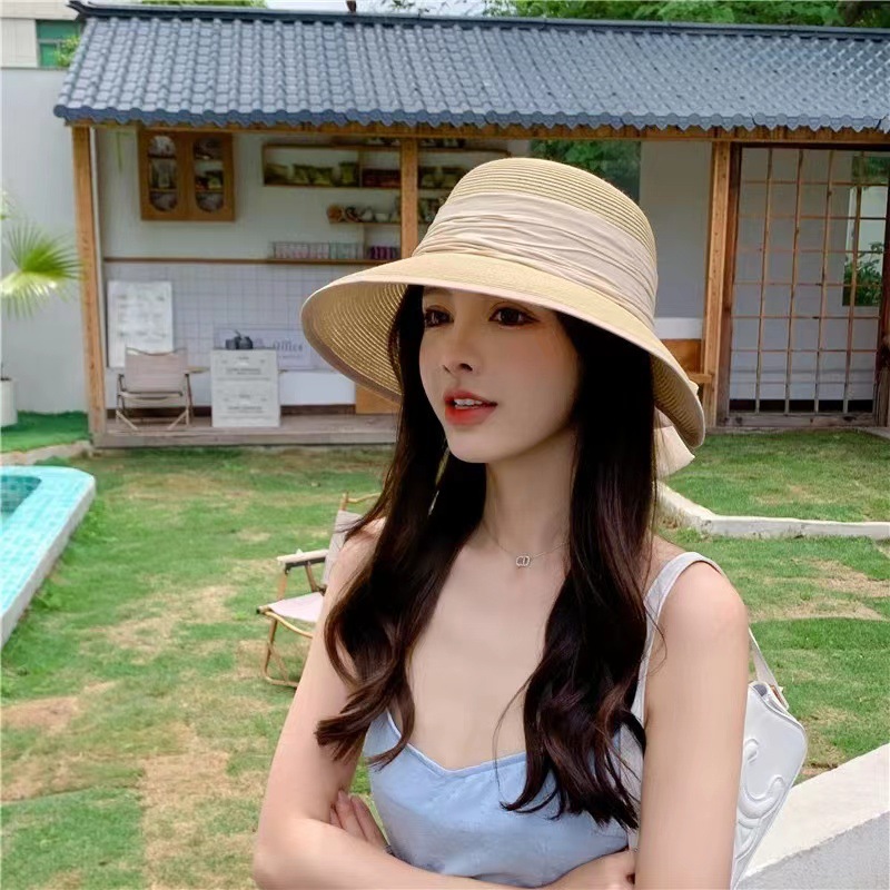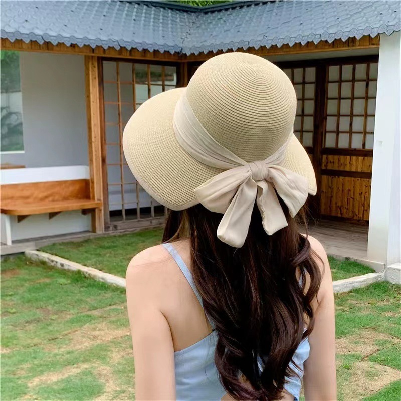 | nameOriginal | Spring and summer women's fine-grained Butterfly Festival ribbon Japanese travel sun protection UV protection foldable peach heart straw hat |