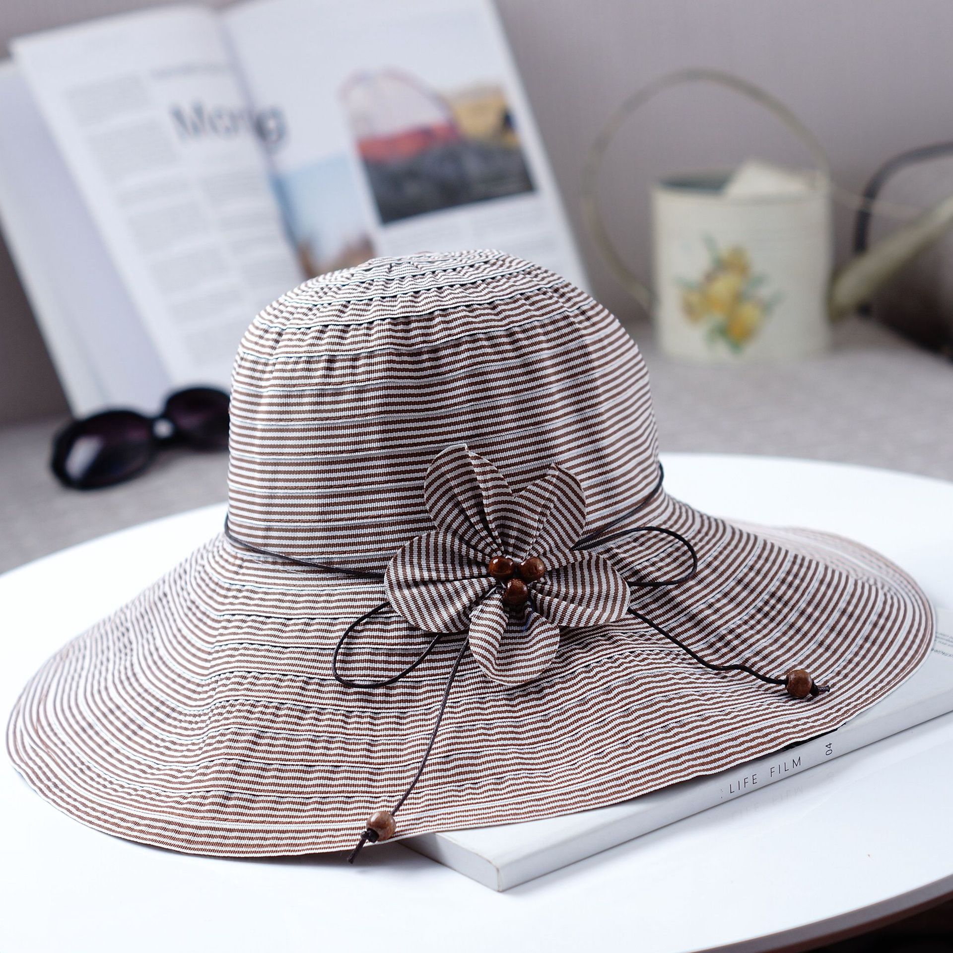 | nameOriginal | Spring and Summer Women's Pinstriped Big Rim Flower Foldable Japanese Travel Sun Protection UV Protection Foldable Big Rim Cap |
