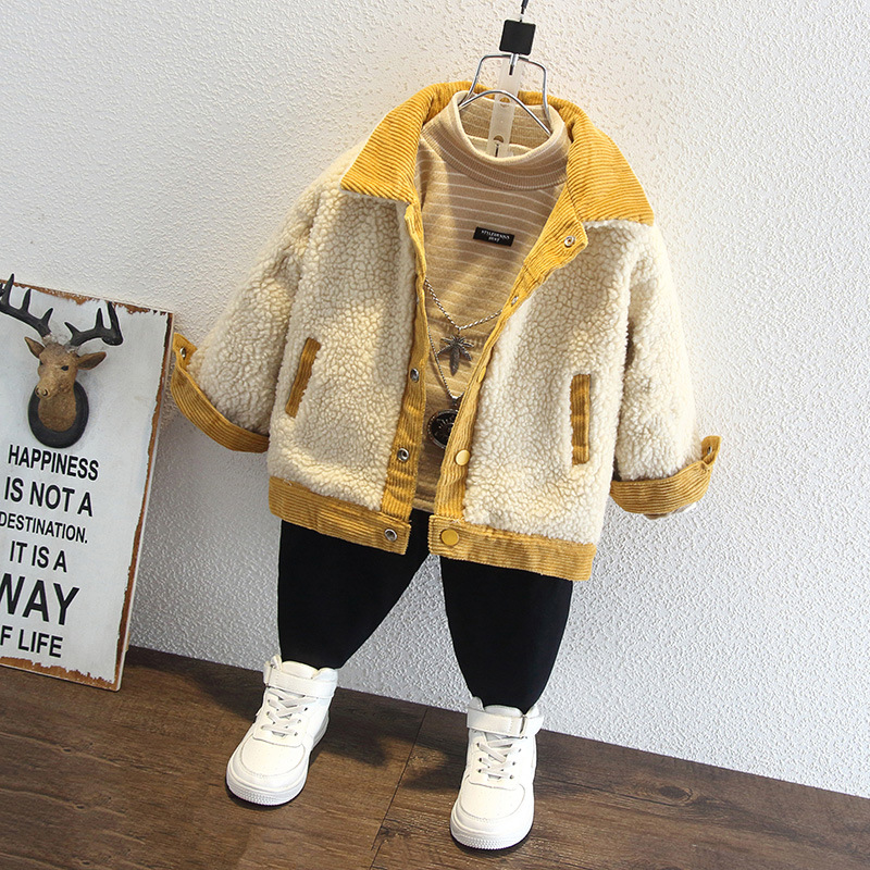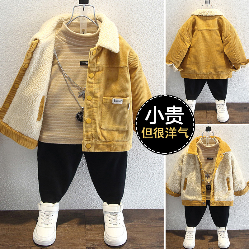Spring, autumn and winter coat for boys and children fashionable fashionable men and babies fleece-lined thickened Wick jacket fashionable 4-year-old 9