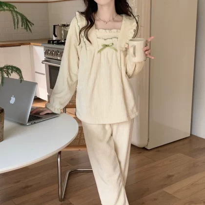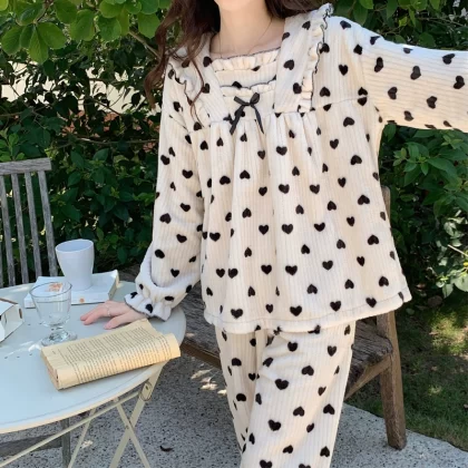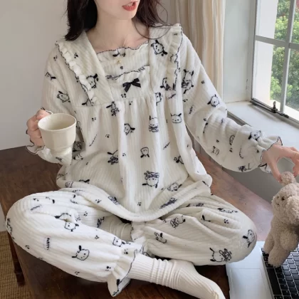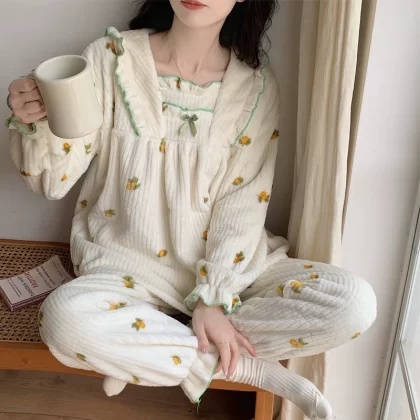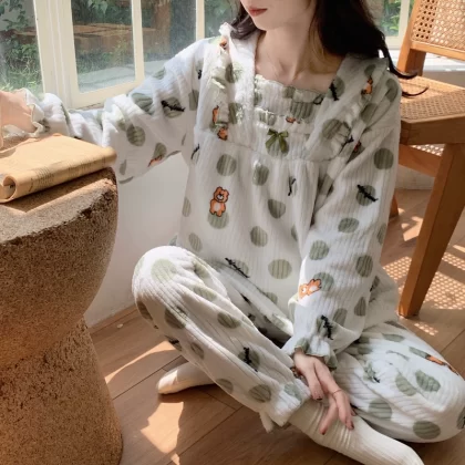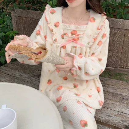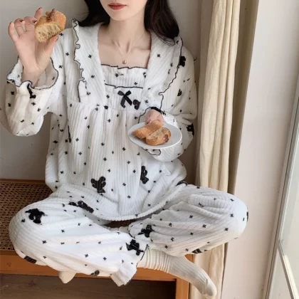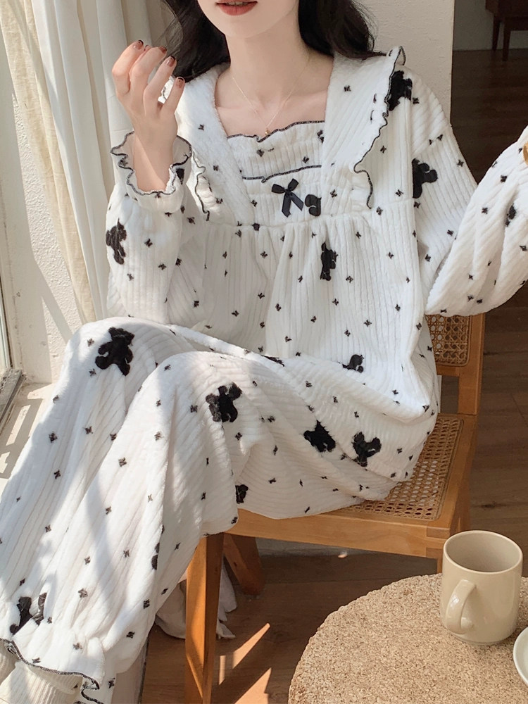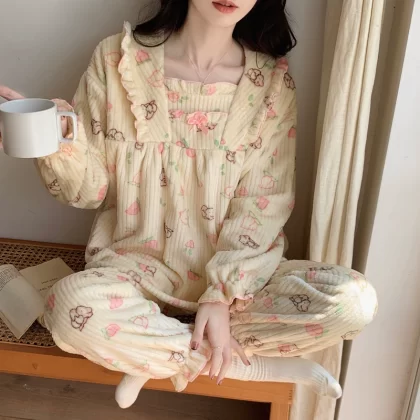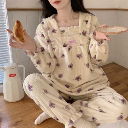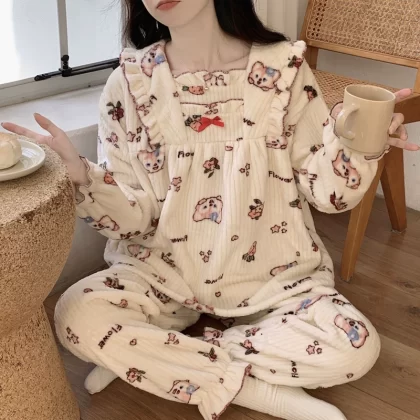 | nameOriginal | Spring, autumn and winter coral velvet pajamas for women, winter Korean style cute home clothes, students, flannel, small suit, plus velvet |