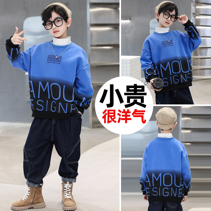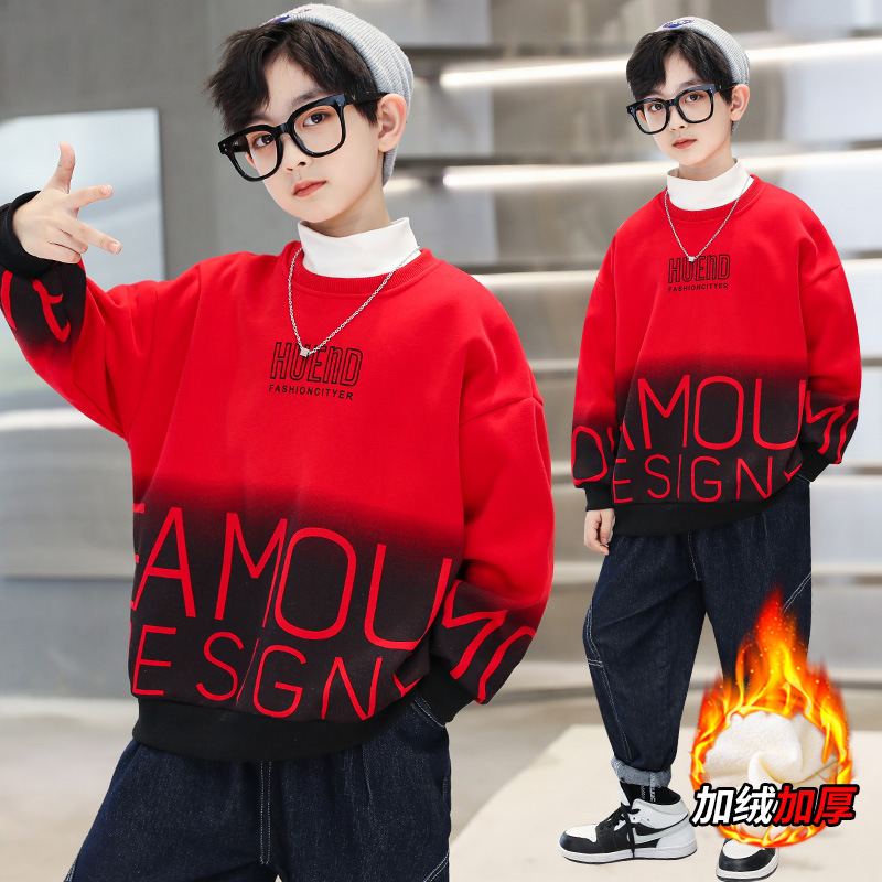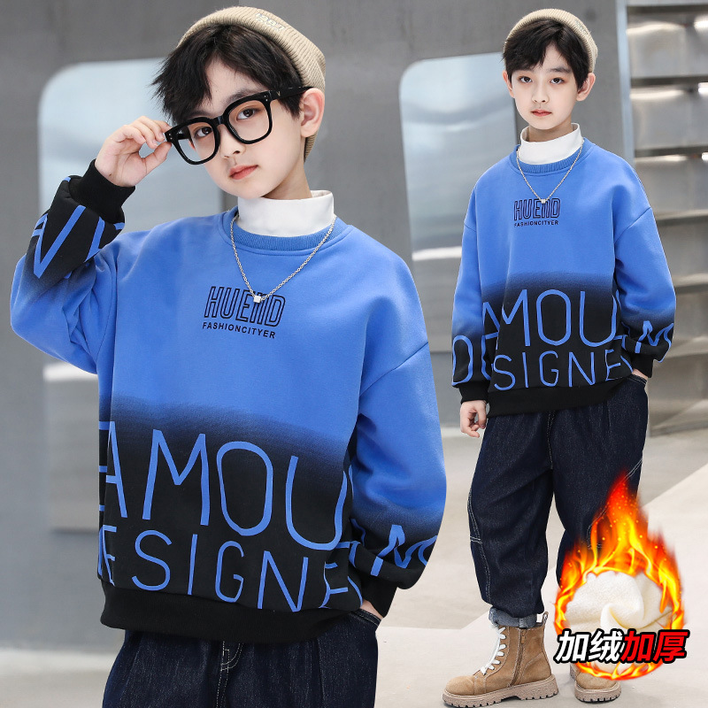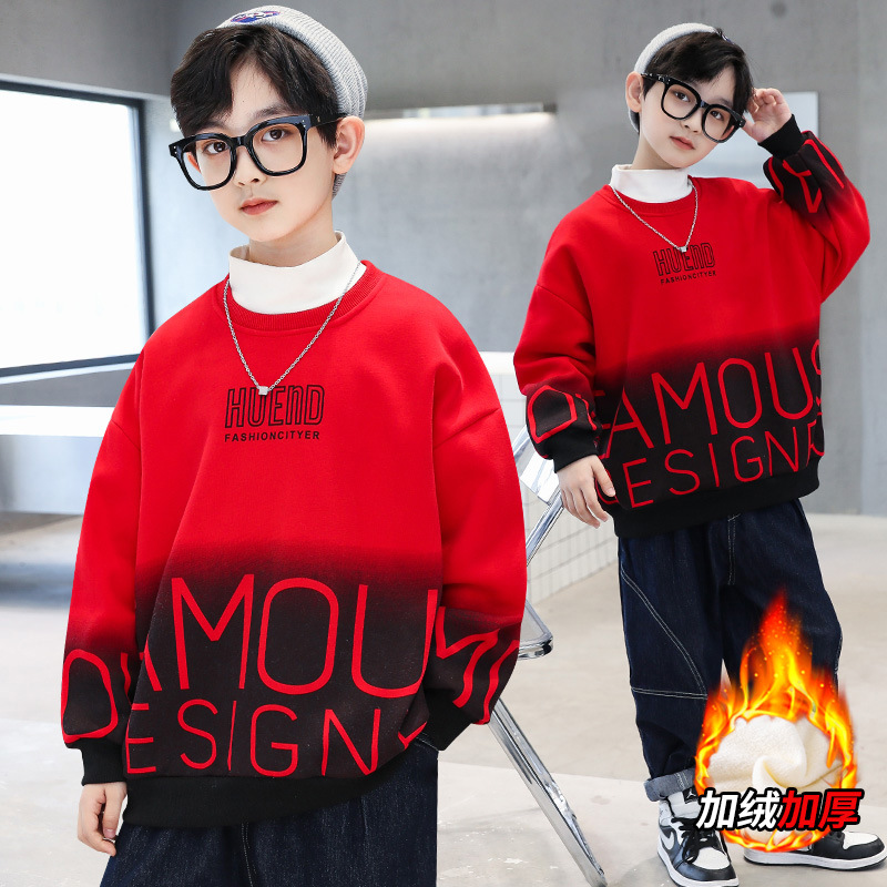 Spring, autumn and winter sweater for medium and large boys children’s clothing fashionable fashionable fleece-lined one-piece thickened bottoming shirt