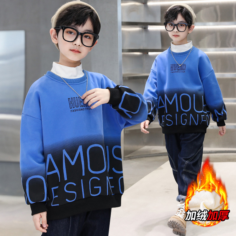 Spring, autumn and winter sweater for medium and large boys children's clothing fashionable fashionable fleece-lined one-piece thickened bottoming shirt