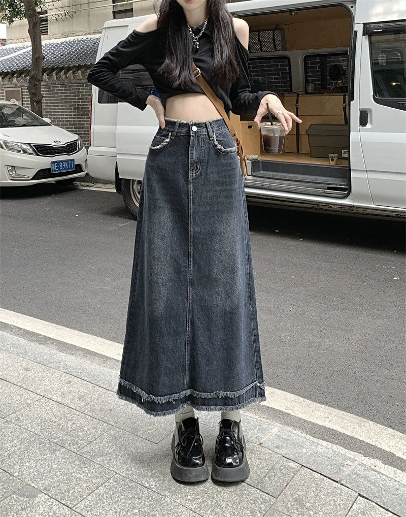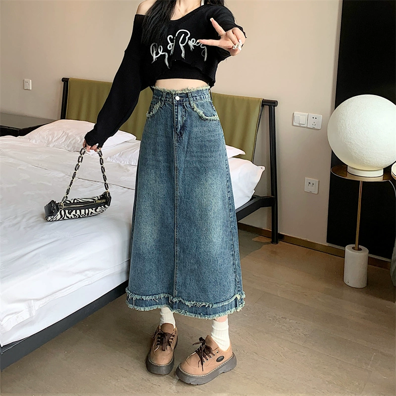 | nameOriginal | Spring design retro denim long skirt for petite people |