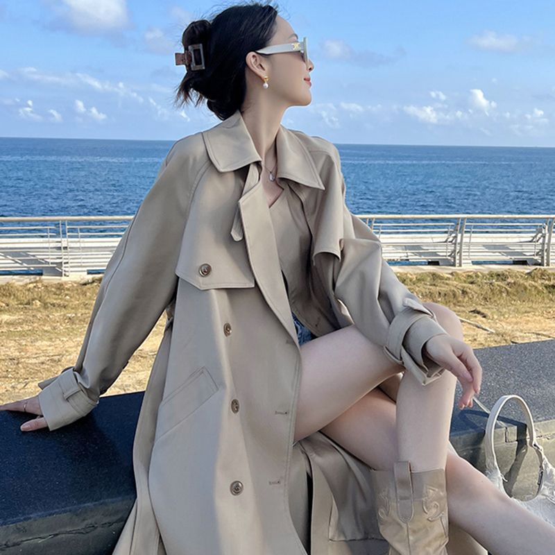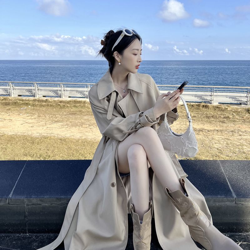 Spring Design Sense Mid-length Knee-length khaki Coat Coat Women’s British Style Socialite Casual High-grade Coat