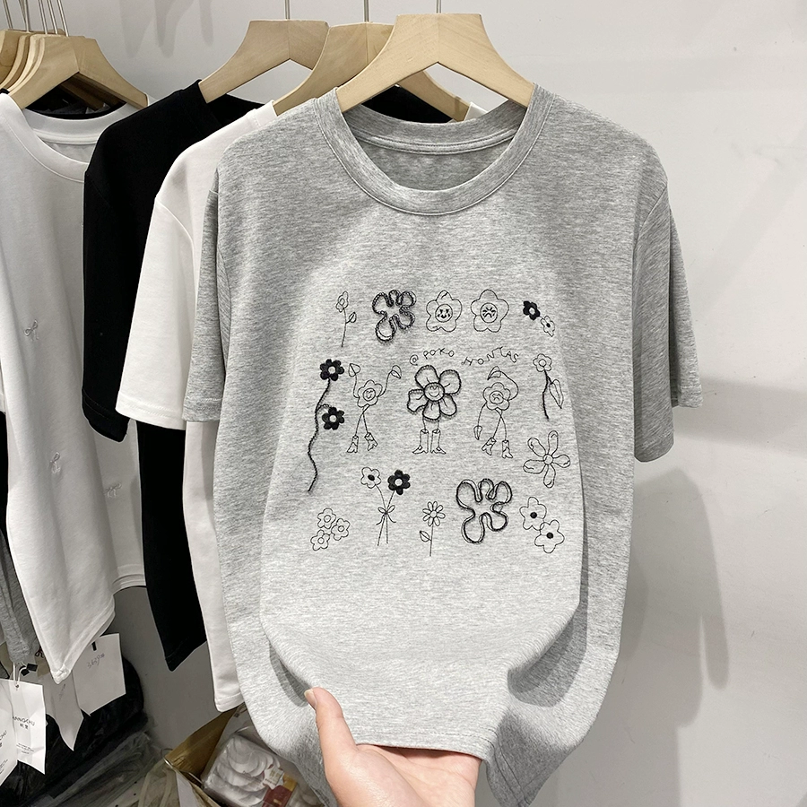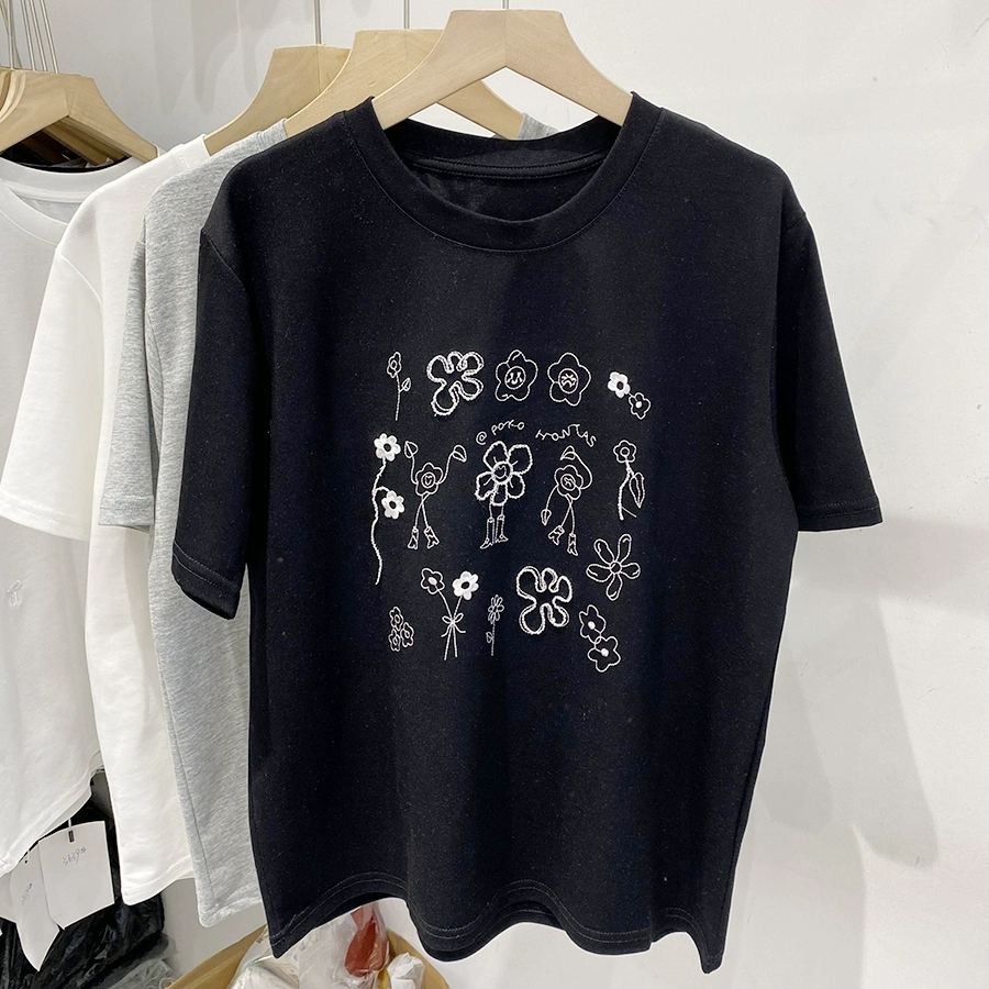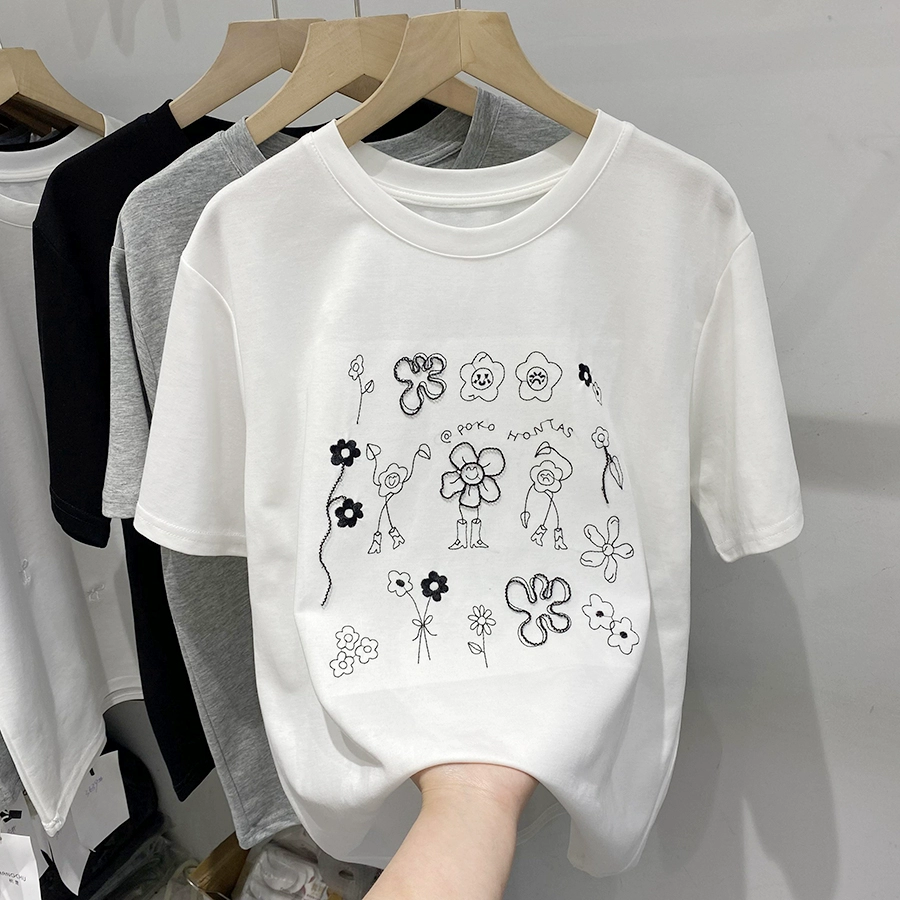 | nameOriginal | Spring flower embroidered short sleeve t-shirt top cartoon |