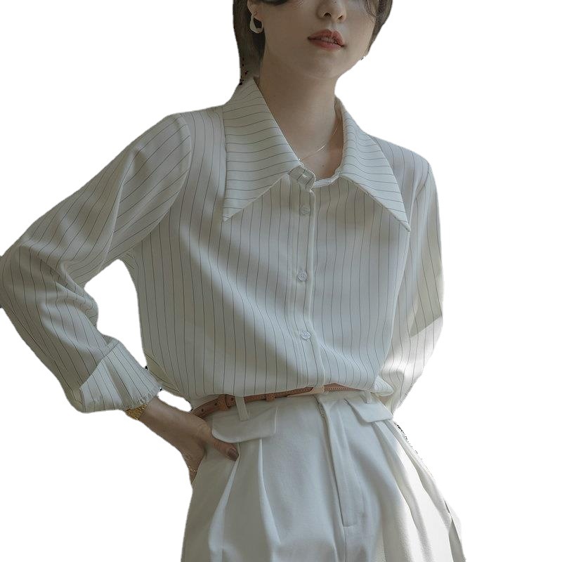 Spring French Style Chic Striped Long Sleeve Shirt Women’s Design Sense Niche Commuter Professional Shirt Sense Top
