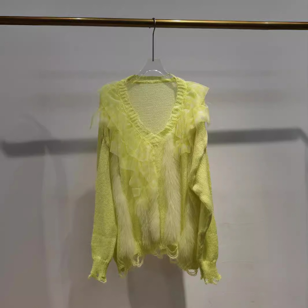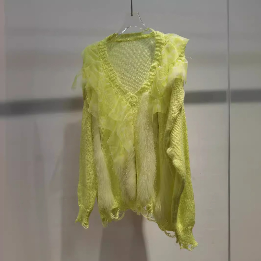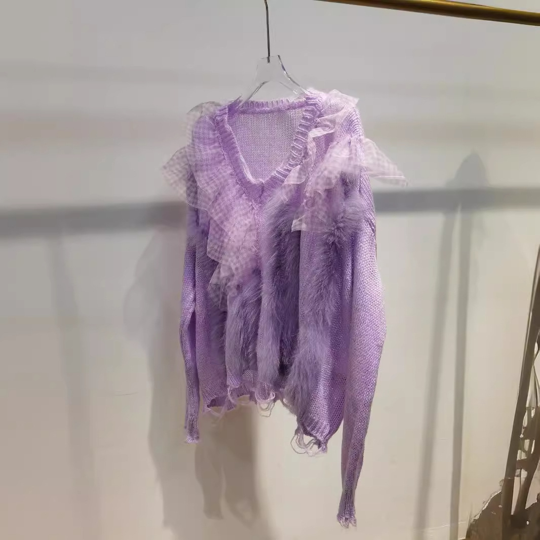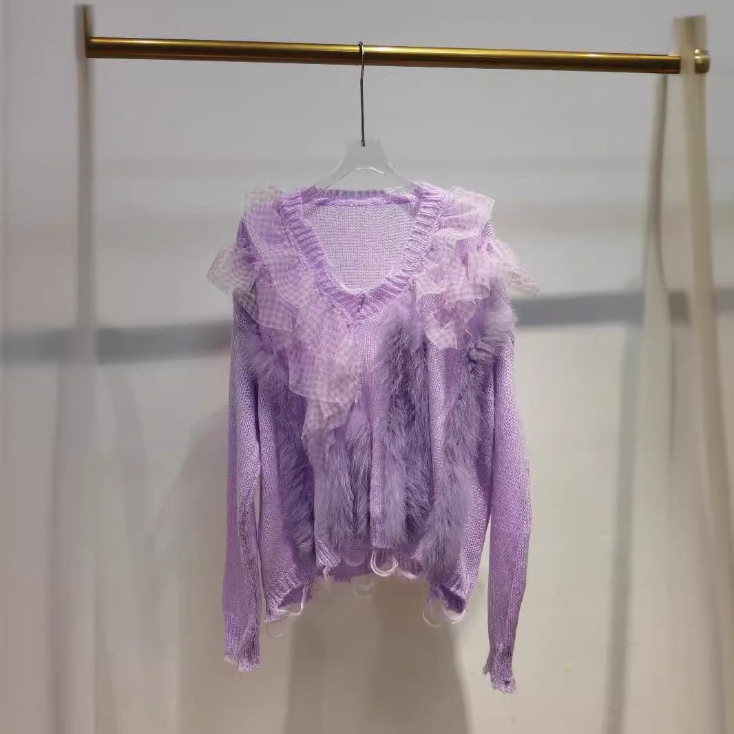 | nameOriginal | Spring Heavy Industry Nail Bead Fairy Korean High-end Sense Stitching Fox Fur Age-reducing Fashion Sweater Knitted Pullover Autumn |