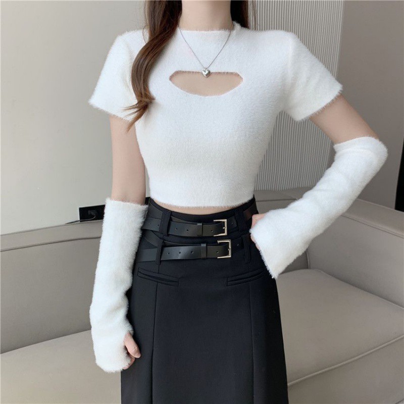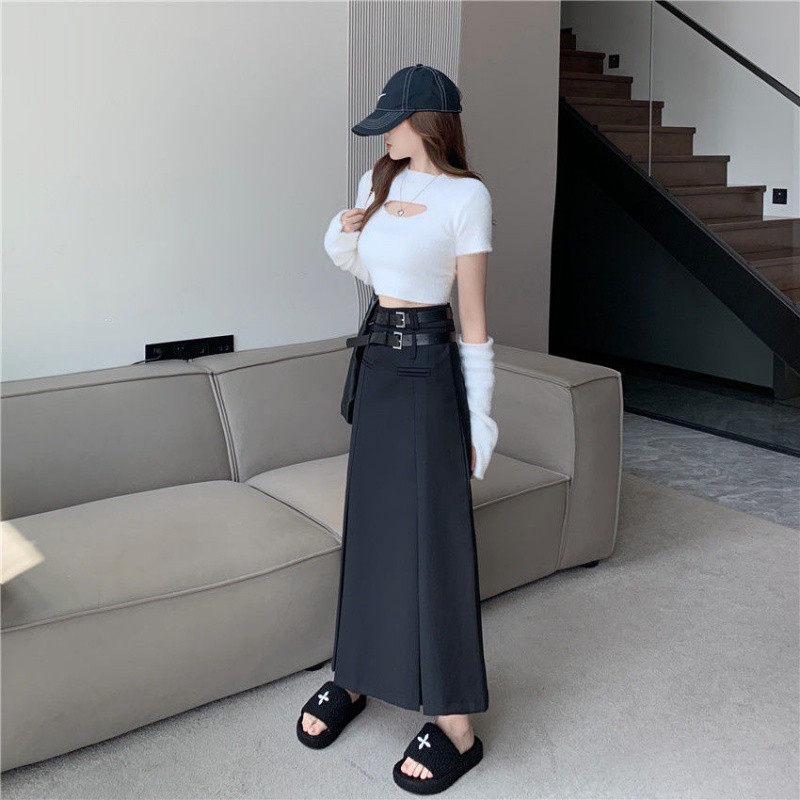 Spring High Waist Fashionable Pleated Double Belt Skirt Elegant Irregular Mid-length Dress
