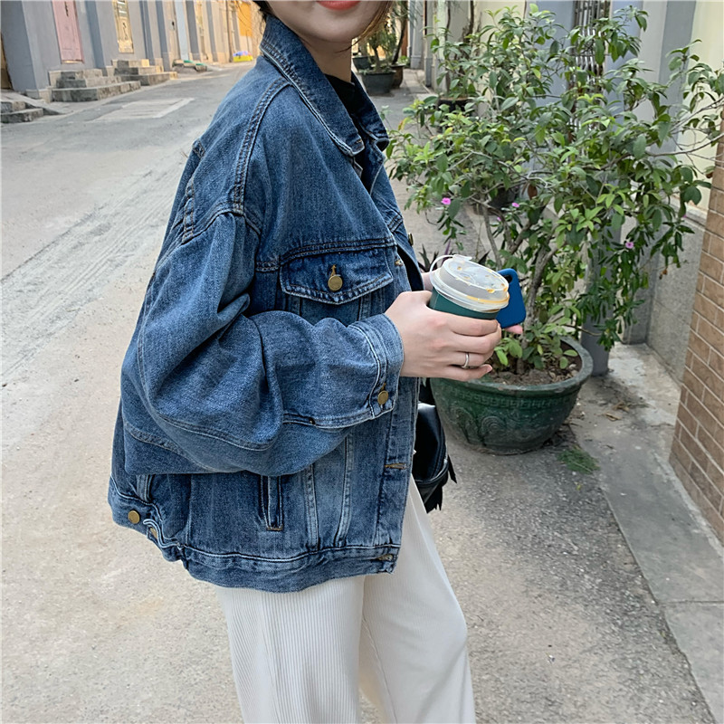 Spring Japanese and Korean New Large Size Retro Hong Kong Style Elegant Denim Jacket Women’s All-match Korean Style Loose Casual Top