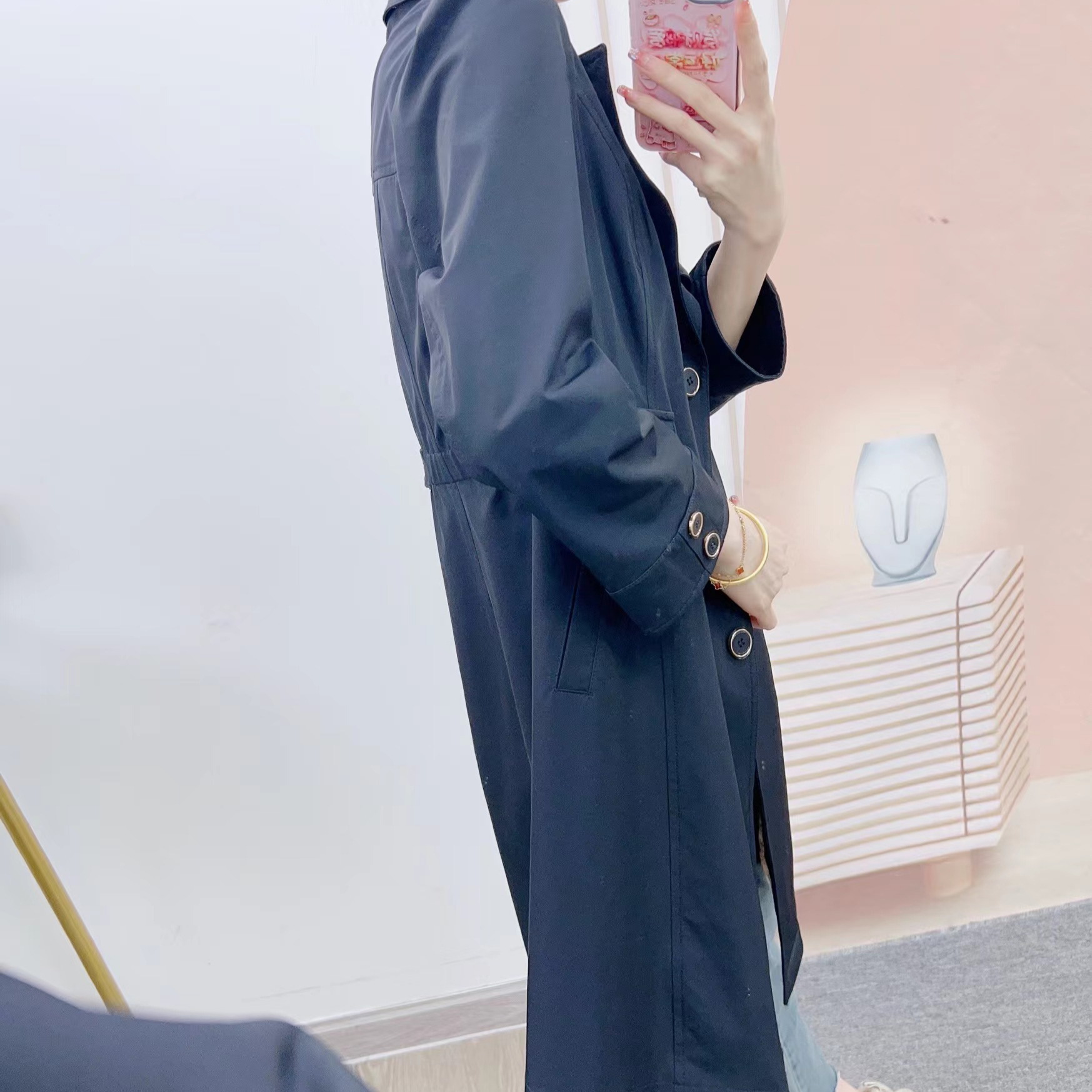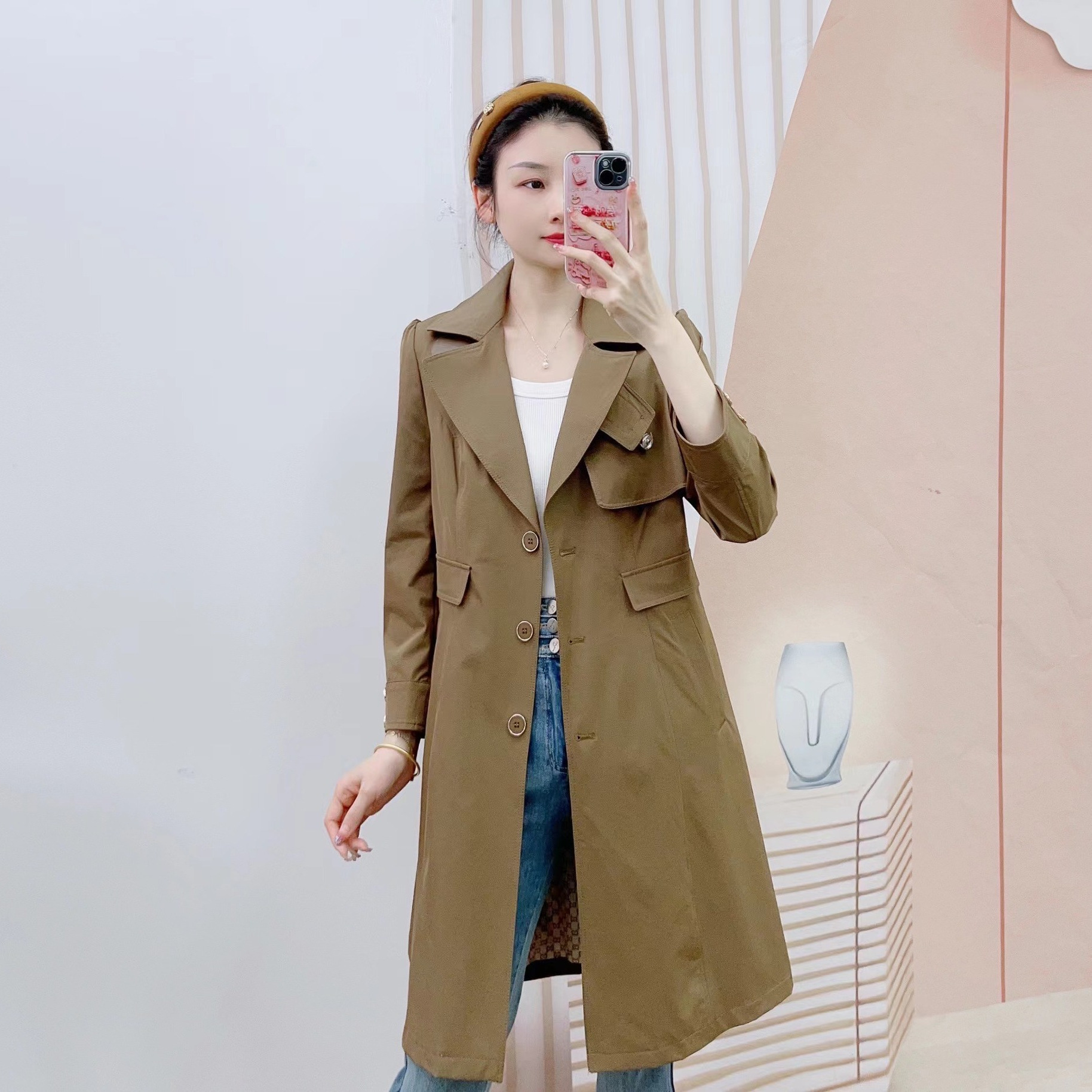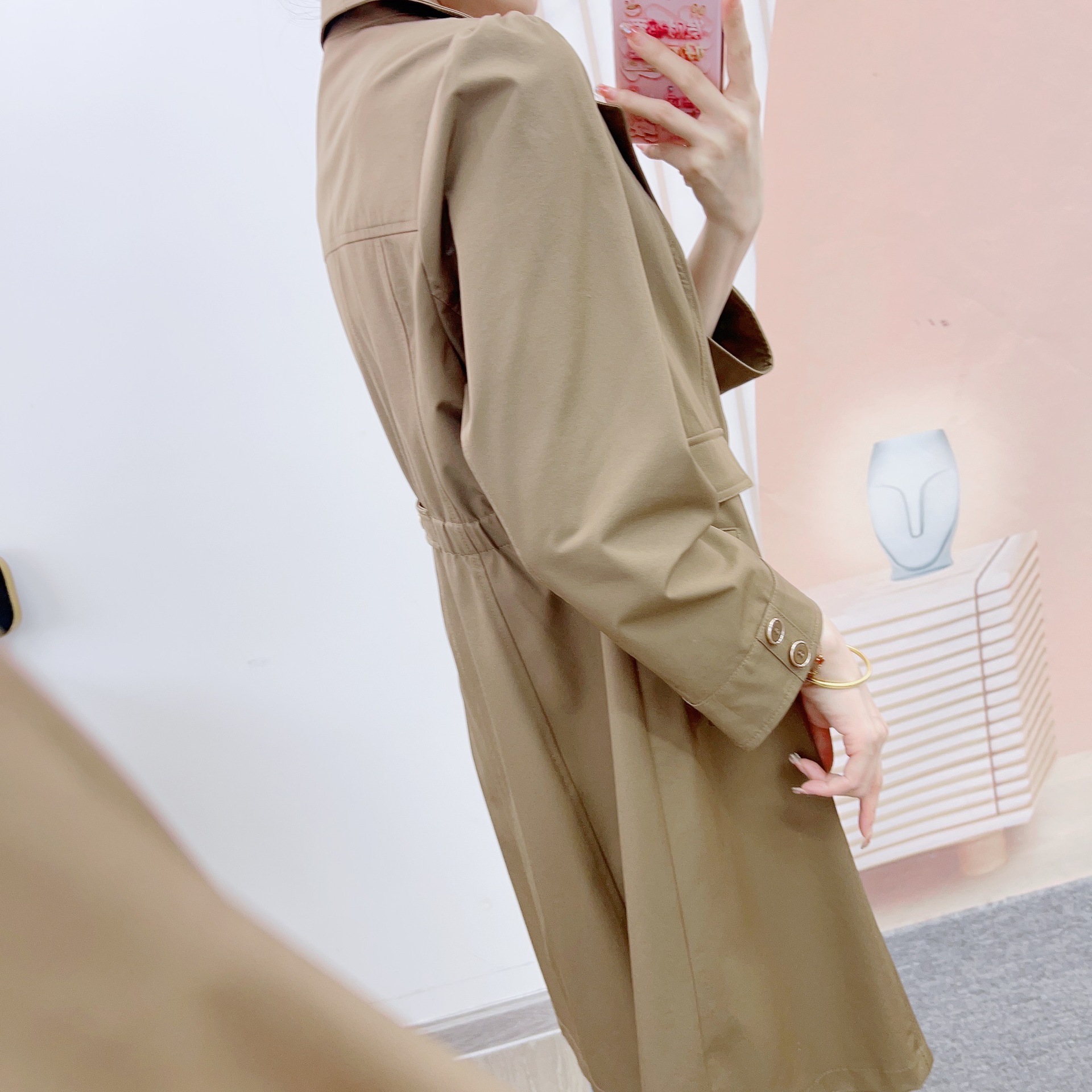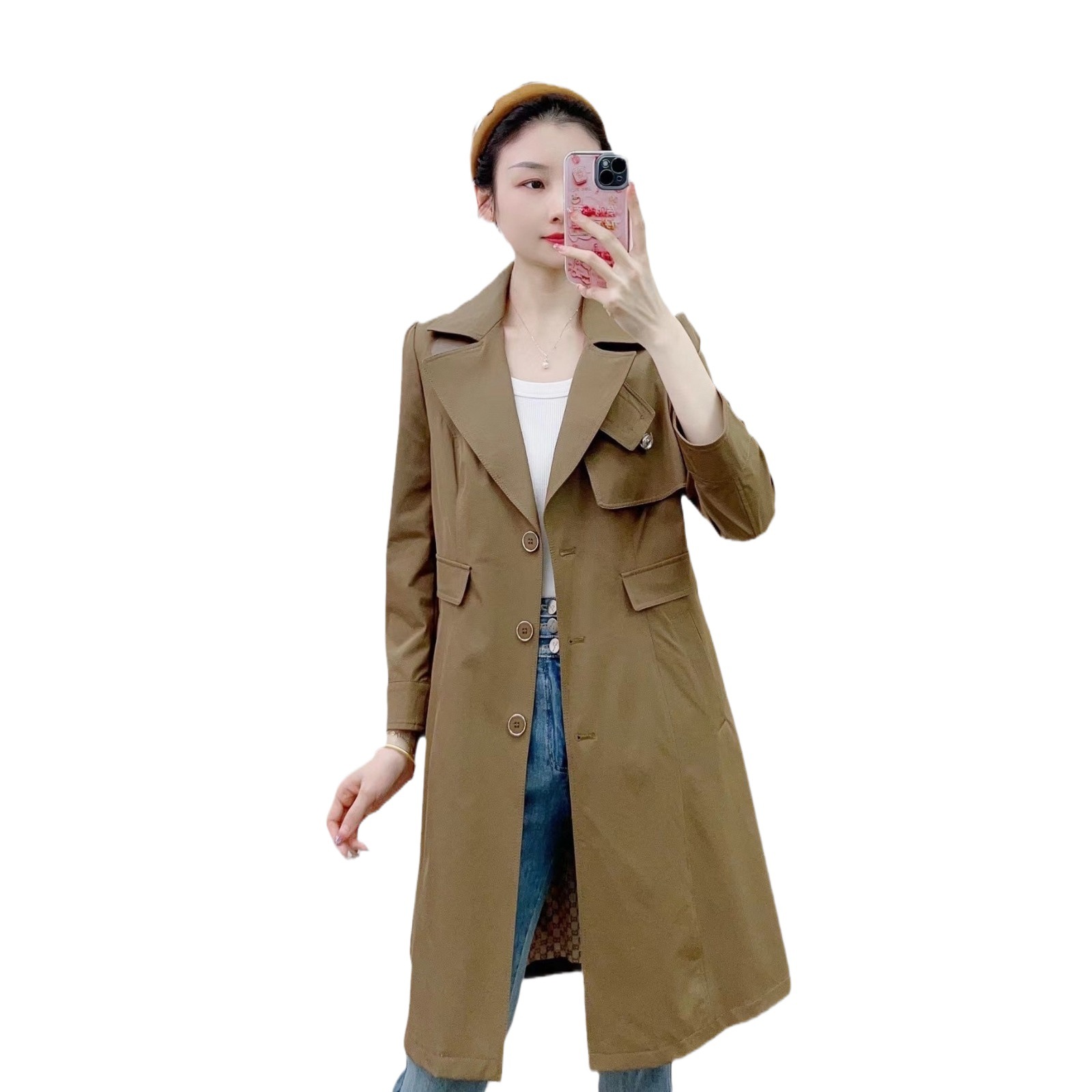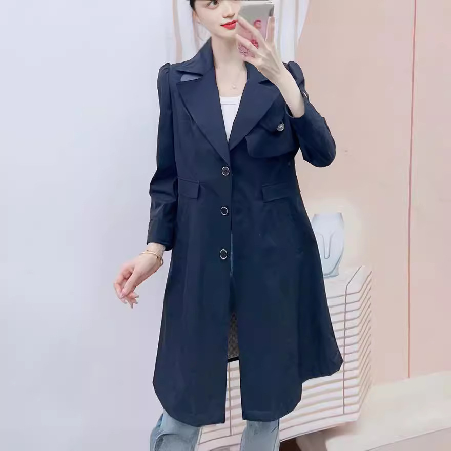 | nameOriginal | Spring Khaki Thin Coat Over-the-knee Korean Style Thin Elegant Artistic All-match Mid-length Coat for Small Women |
