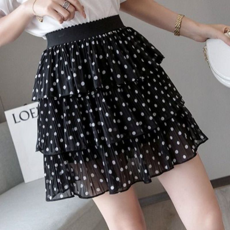 Spring Korean-style Pleated Ruffled Chiffon Skirt with A- line High Waist Layers Cake Short Skirt for Women