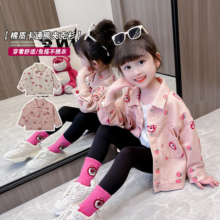 Spring Little Girl Strawberry Bear Denim Coat P49