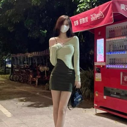 | nameOriginal | Spring Little Man Pure Desire Sweet and Spicy Wear Green Shoulder Top Hip Sling dress Two-piece Suit for Women |